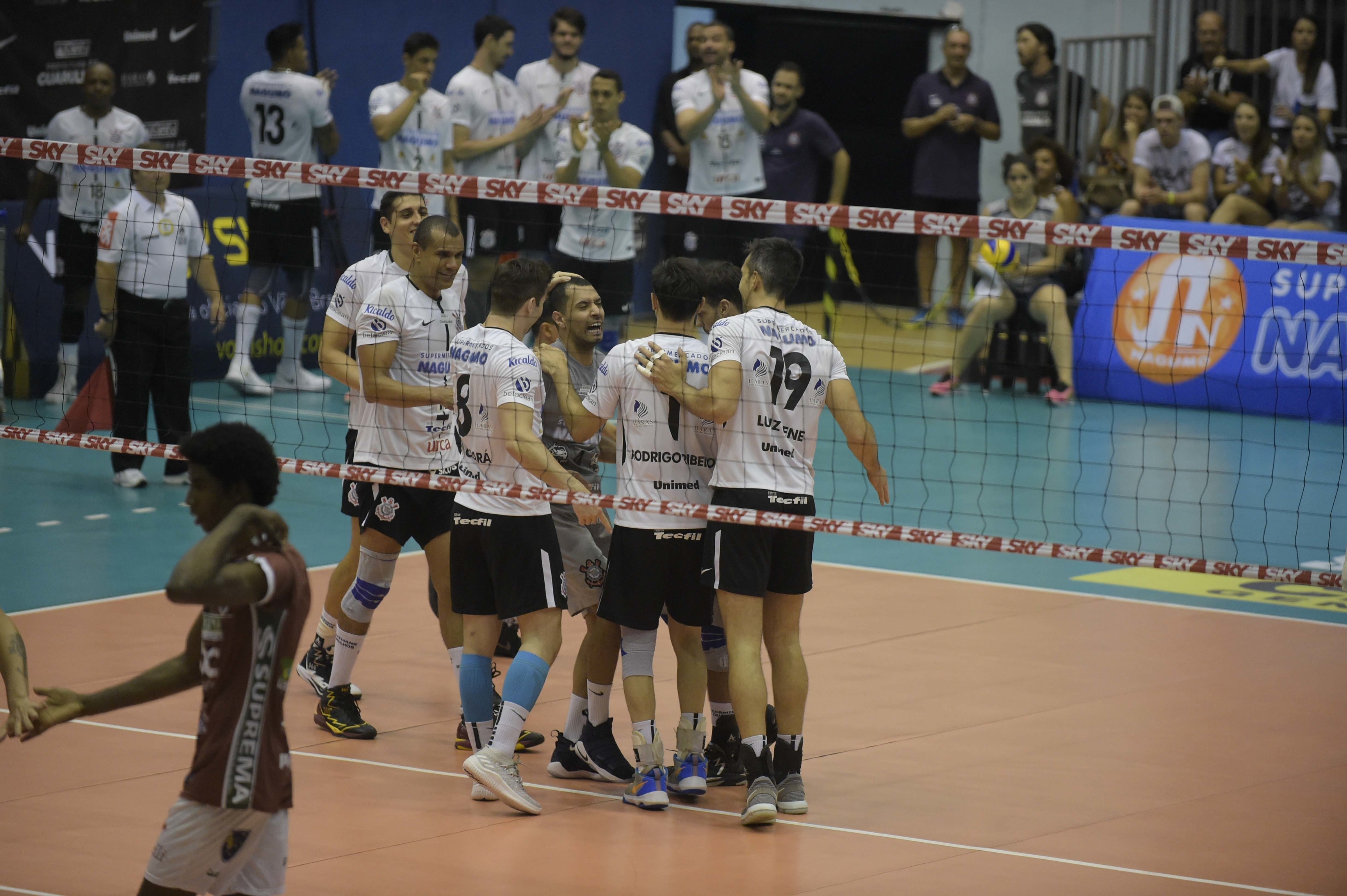 Na última rodada da fase de classificação e jogando em casa, o Corinthians-Guarulhos venceu o JF Vôlei, de Minas Gerais, por 3 sets a 1, parciais de 25/20, 33/31, 17/25 e 25/19, confirmando a sexta colocação. O mata-mata promete ser de fortes emoções. O Alvinegro encara um velho e poderoso conhecido: o Sesi-SP.