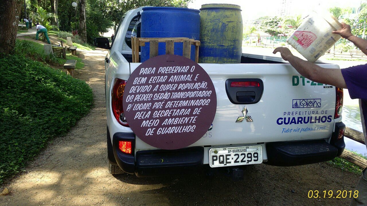 A Prefeitura de Guarulhos está realizando nesta segunda-feira (26), mais uma retirada de tilápias do Lagos do Patos, na Vila Galvão, e também dos lagos do Bosque Maia. As novas moradas dos peixes são os lagos do Zoológico, no Jardim Rosa de França, e do Horto Florestal Burle Marx, em Bonsucesso.