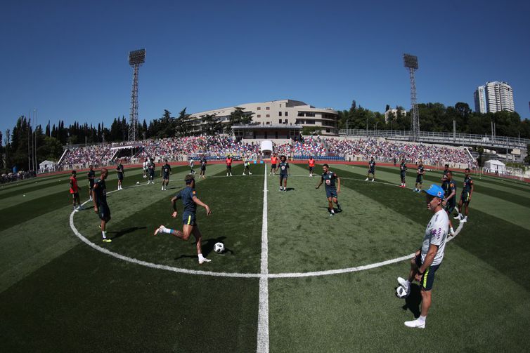Cerca de 4 mil torcedores estiveram presentes na arquibancada do campo do Centro de Treinamento da Seleção Brasileira, ao lado do Swissotel Resort Camélia, onde está hospedada a delegação do Brasil, em Sochi, para o primeiro treino da equipe canarinha na Rússia.