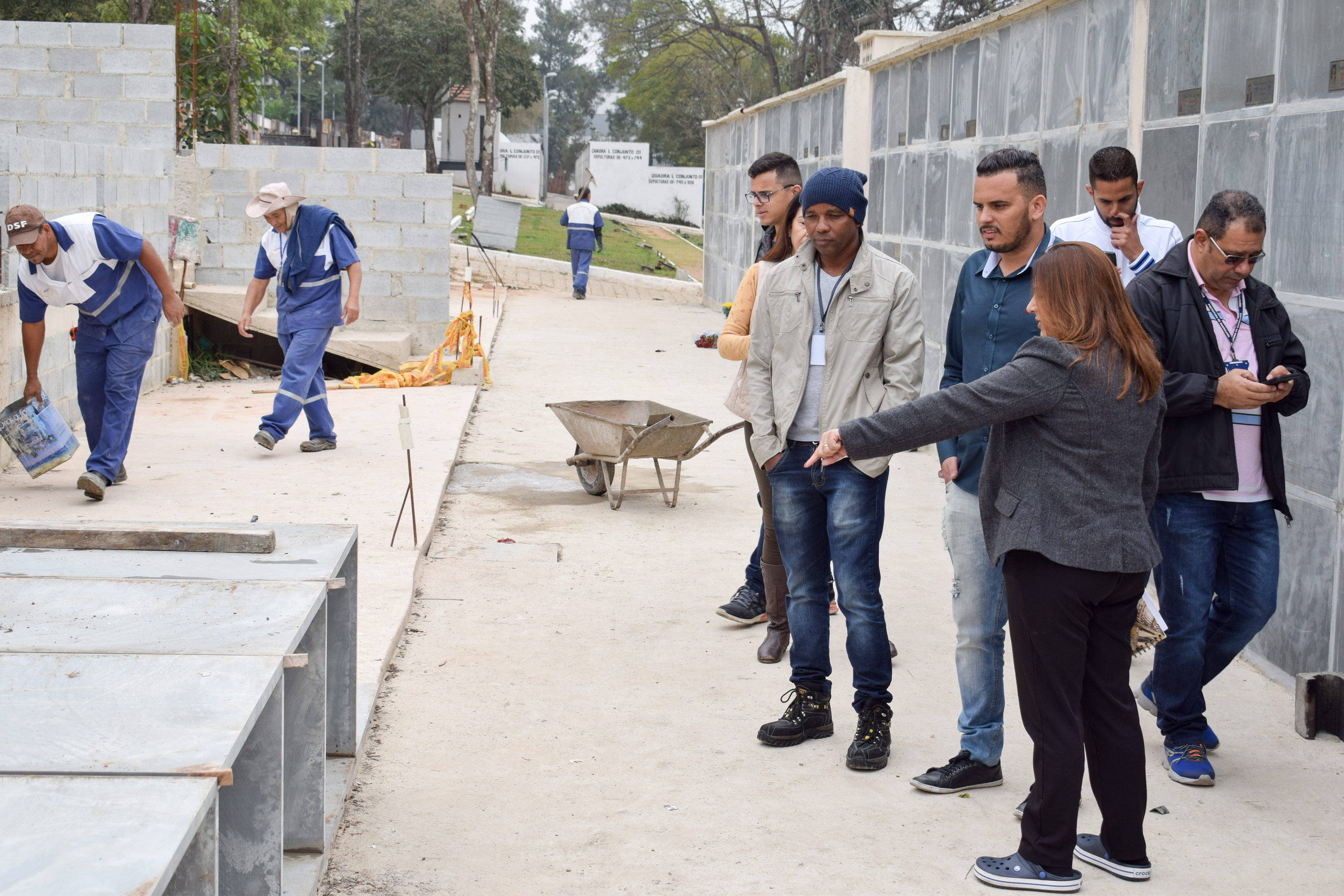Equipe da Secretaria de Obras da Prefeitura de Osasco veio a Guarulhos nesta quarta-feira (18) para conhecer o sistema de sepulturas verticais do Cemitério Nossa Senhora de Bonsucesso, em Bonsucesso. A visita técnica foi guiada por Rosemeire Batista Salgado de Almeida, diretora do Departamento de Serviços Funerários da Secretaria de Serviços Públicos de Guarulhos e pelo encarregado de manutenção de obra, Cleomar Cavalcante.