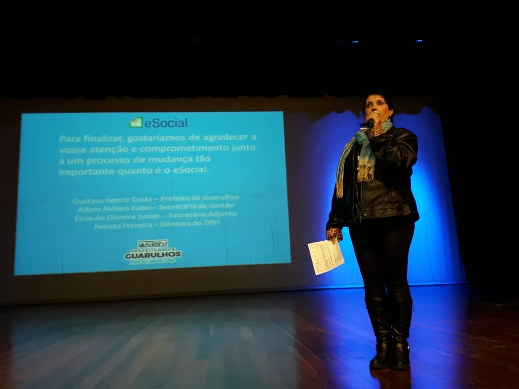 Uma palestra sobre E-Social (Sistema de Escrituração Fiscal Digital das Obrigações Fiscais Previdenciárias e Trabalhistas) reuniu cerca de 200 pessoas no Adamastor Centro, na última segunda-feira, dia 28, O evento foi organizado pela Secretaria de Gestão Municipal, contando com o secretário da Pasta, Adam Kubo, agentes de Recursos Humanos da Prefeitura e convidados do Ipref (Instituto de Previdência dos Funcionários Públicos Municipais de Guarulhos.