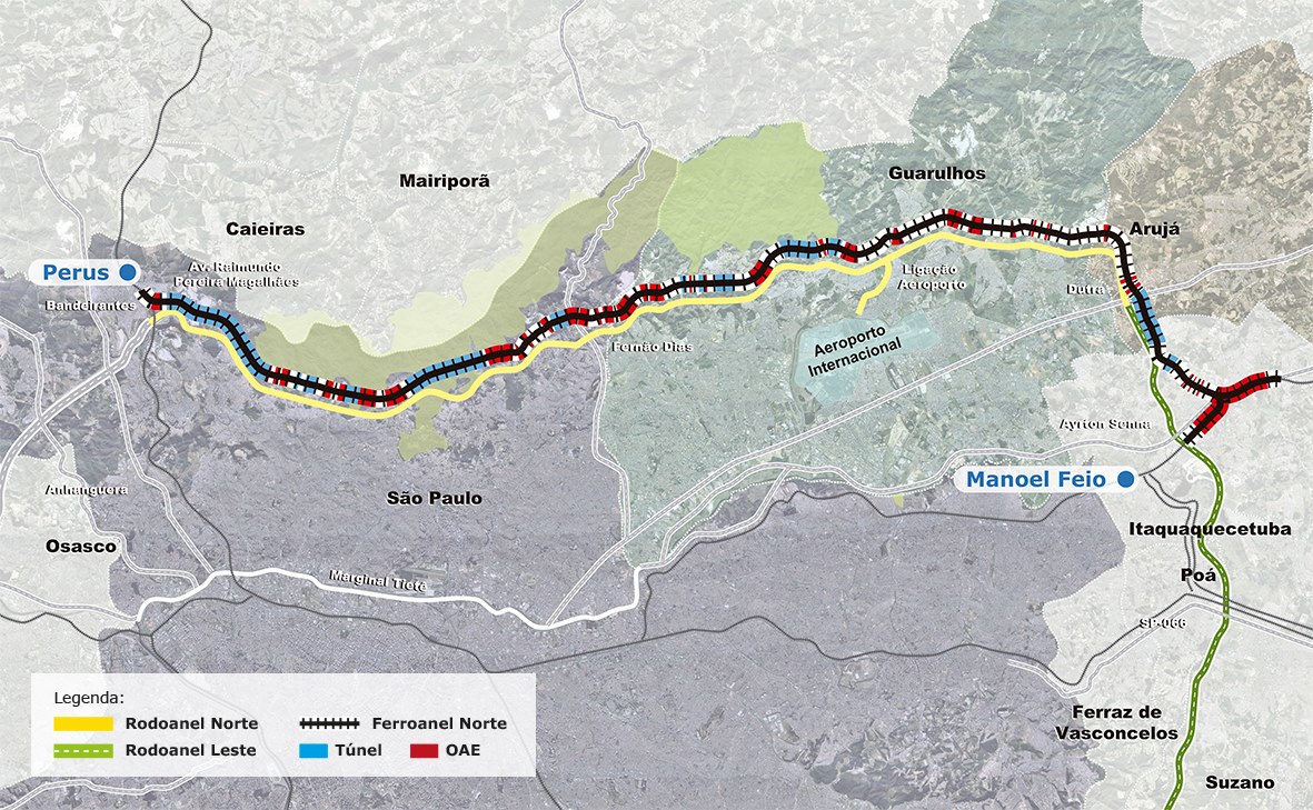 O Ferroanel Norte será um ramal ferroviário de 53 quilômetros de extensão que interligará as estações de Perus, em São Paulo, e de Manoel Feio, em Itaquaquecetuba, em área contígua ao traçado do Rodoanel. Sua implantação possibilitará que os trens de carga que hoje compartilham os mesmos trilhos com os trens da Companhia Paulista de Trens Metropolitanos (CPTM) sejam desviados, eliminando o conflito entre cargas e passageiros nos trilhos que cortam o interior da metrópole.