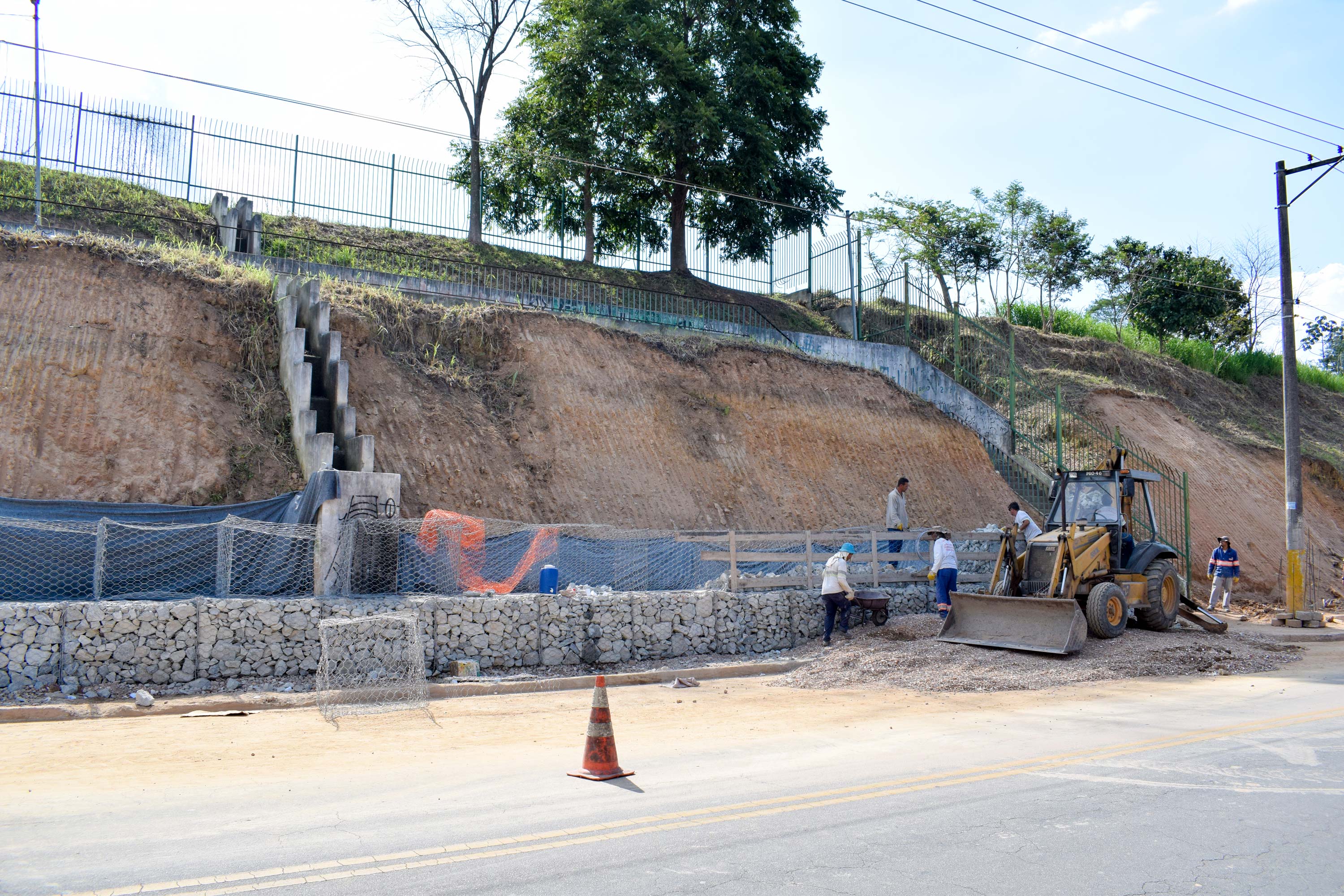 Teve início nesta semana a construção de um muro de 45 metros de extensão e cerca de 2 metros de altura para contenção de talude (terreno inclinado que serve para dar sustentação e estabilidade ao solo), em um trecho de passagem de pedestres na avenida Benjamim Harris Haniccut, área do Cemitério Necrópole do Campo Santo, conhecido como Vila Rio.