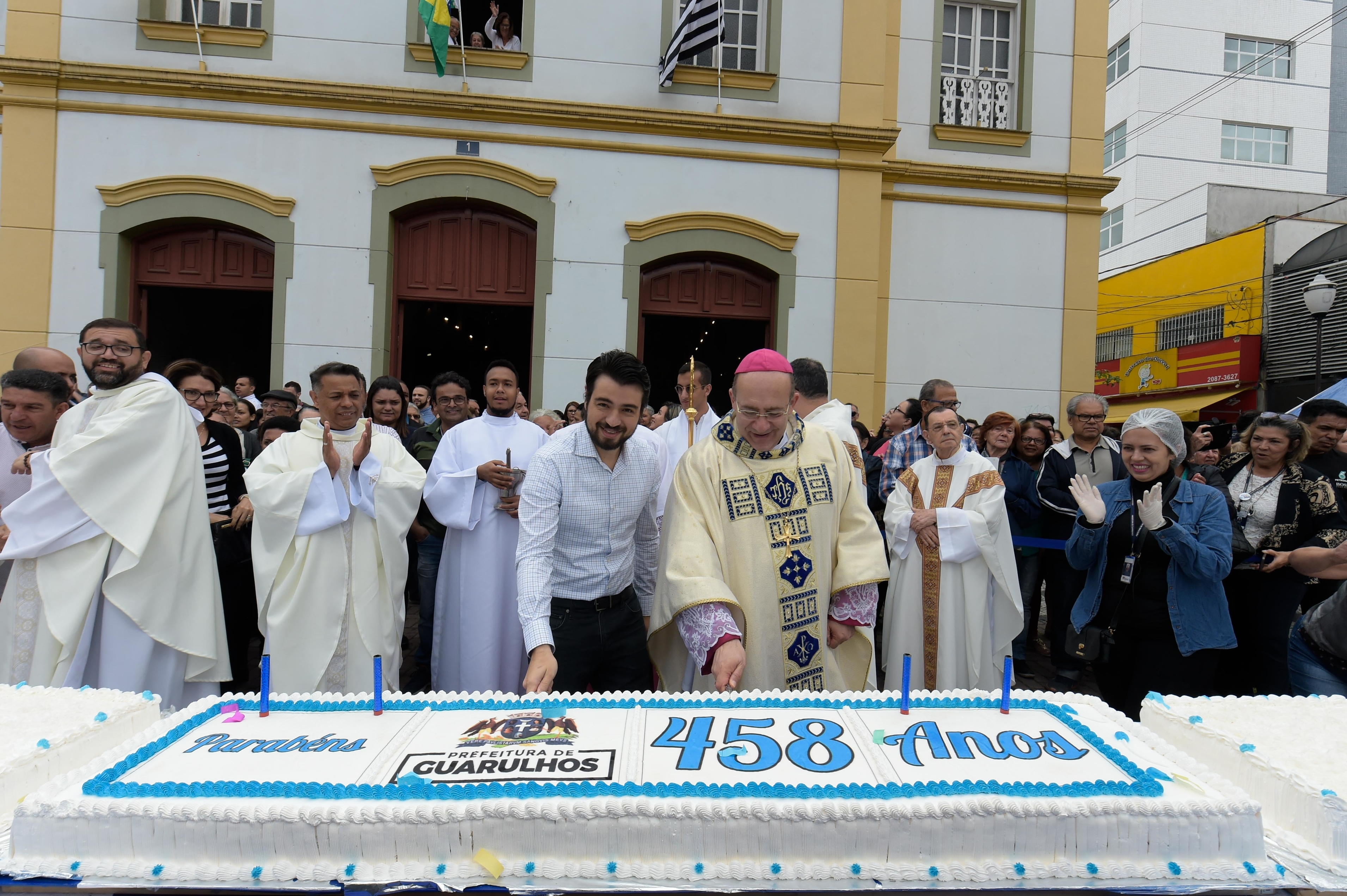 No último sábado (8), Guarulhos completou 458 anos com celebrações, inaugurações e a entrega de diversos equipamentos públicos revitalizados. As comemorações tiveram início na Catedral Nossa Senhora da Conceição, no Centro, quando o prefeito Guti, ao lado do governador Márcio França, participaram do início da missa festiva pelo aniversário da cidade. Após a celebração, o bispo diocesano Dom Edmilson Amador Caetano fez a benção do bolo, que foi distribuído aos fieis e populares que cantaram o “parabéns a você”.