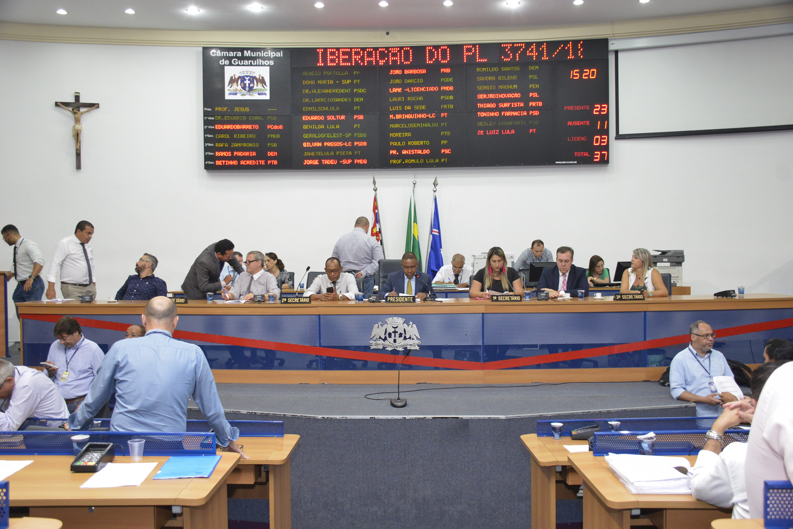 Todos os 64 itens do Grande Expediente foram deliberados. Entre eles estavam o PL 344/2019, encaminhado pelo Executivo, que dispõe sobre a cessão de servidores municipais junto à Administração Pública Federal, Estadual e Municipal. Destaque também para a proposta de Sérgio Magnum (Patriota), sob o número 3771/2018, que proíbe a venda de qualquer tipo de medicamento em mercados, supermercados, padarias, conveniências e estabelecimentos similares em Guarulhos. A partir de agora as proposituras serão analisadas pelas Comissões Permanentes, para só assim serem votadas em sessão.