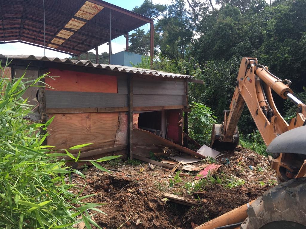 A Prefeitura de Guarulhos removeu nesta quarta-feira (13) um barraco na avenida das Margaridas, ao lado da Escola Pastor Peracio Grilli, na Cidade Soberana, onde encontrou entorpecentes e cachimbo de crack. A ação conjunta envolveu o Departamento de Acompanhamento e Controle de Ocupações Irregulares (Dacoi), a Guarda Civil Municipal (GCM) e a Proguaru, que ao final da remoção, realizou a limpeza dos entulhos.