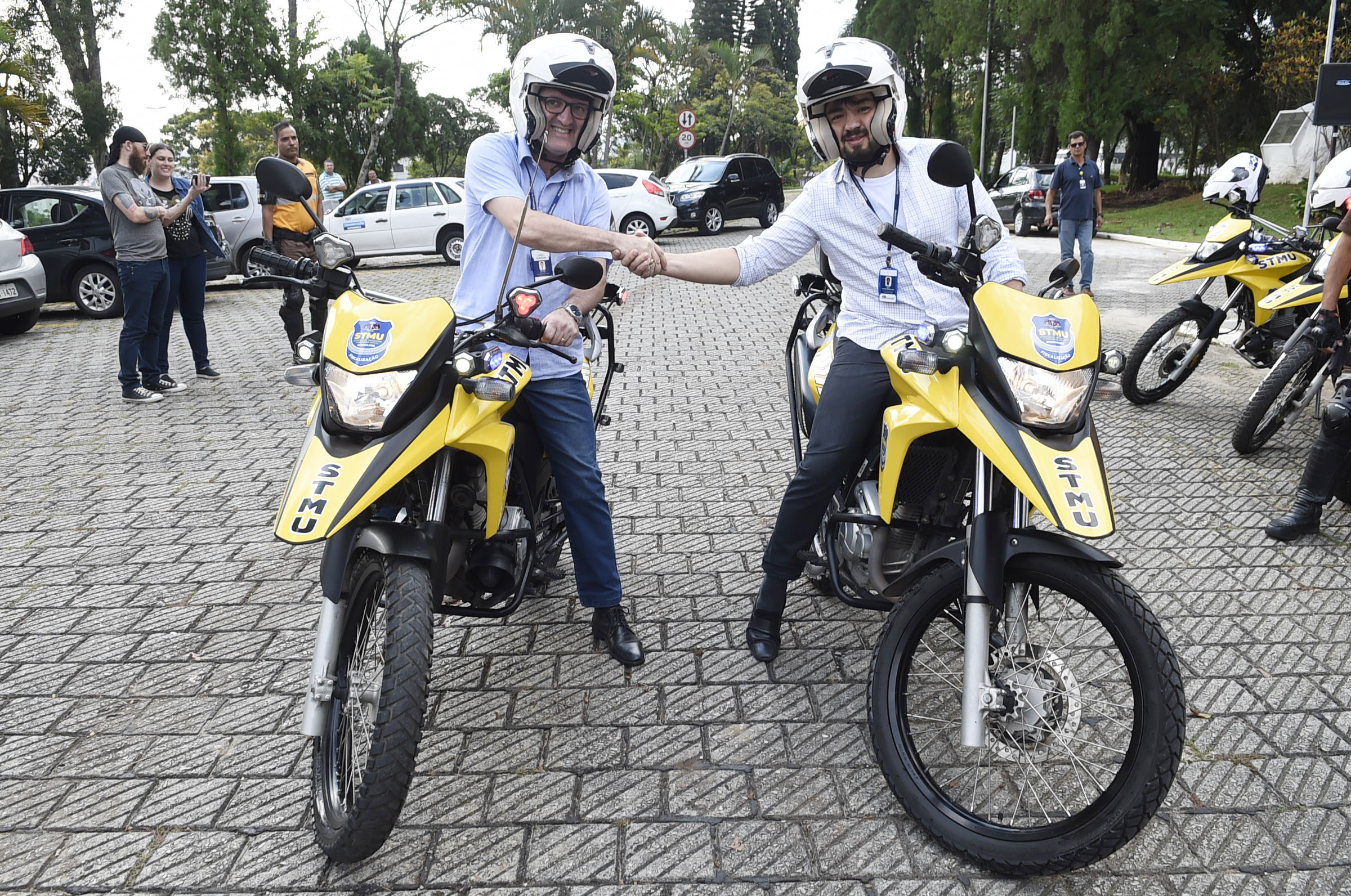 Em uma ação integrada das secretarias municipais, a de Transportes e Mobilidade Urbana (STMU) recebeu nesta terça-feira (26) dez motos Honda XRE-300, com 10 mil quilômetros em média, que eram utilizadas pelos guardas civis municipais da Secretaria de Segurança Pública. Os veículos irão ajudar muito o trabalho dos agentes de trânsito a combater as infrações que acontecem pelas ruas do município.
