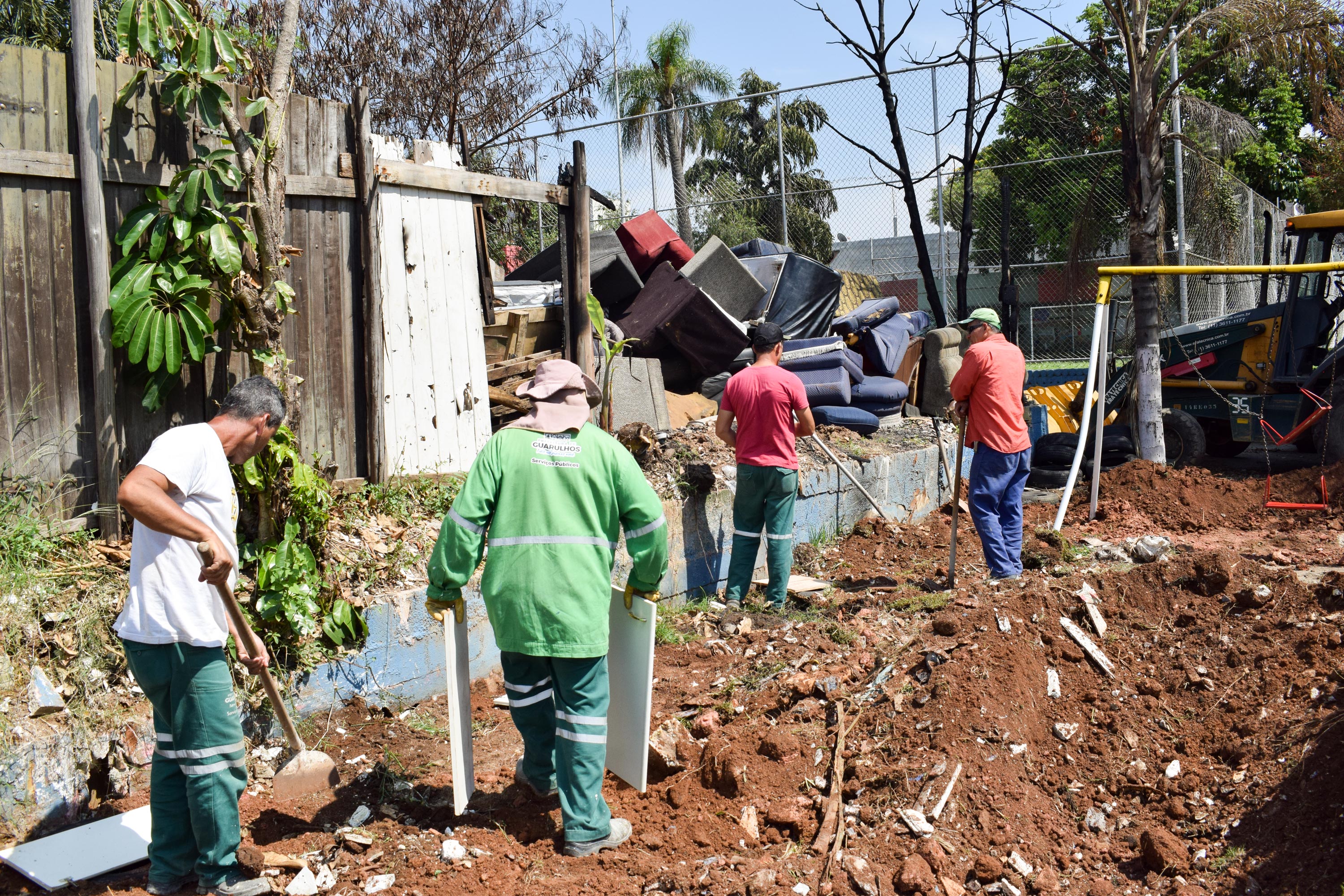 Servidores trabalham na construção de um muro com 120m de comprimento que vai substituir a cerca de alambrado já desgastada. As próximas etapas são a readequação do piso interno, incluindo construção de uma área de 24m² para estacionamento de caçambas do tipo roll on, e edificação de apoio de 20 m². Durante o período de reforma, o atendimento à população ocorre normalmente no local.