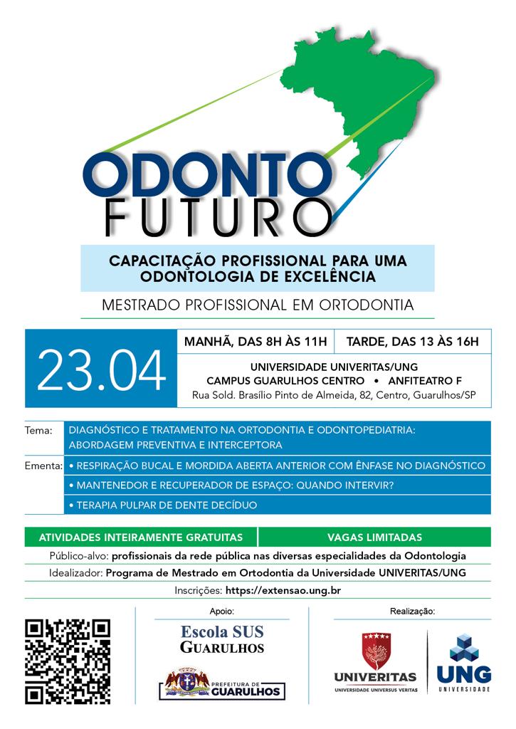 Para o coordenador em Saúde Bucal da Prefeitura, Denilson Toguchi, os temas que serão tratados neste mês de abril são de grande importância, especialmente para prevenção e correção da má oclusão e nas questões referentes ao tratamento de canal dentário em crianças. “O tratamento de pacientes com má oclusão e que respiram pela boca é fundamental para diminuir os problemas respiratórios, melhorar a mastigação, a convivência social e a autoestima, ajudando, principalmente, no desenvolvimento físico e intelectual”, explicou Toguchi.