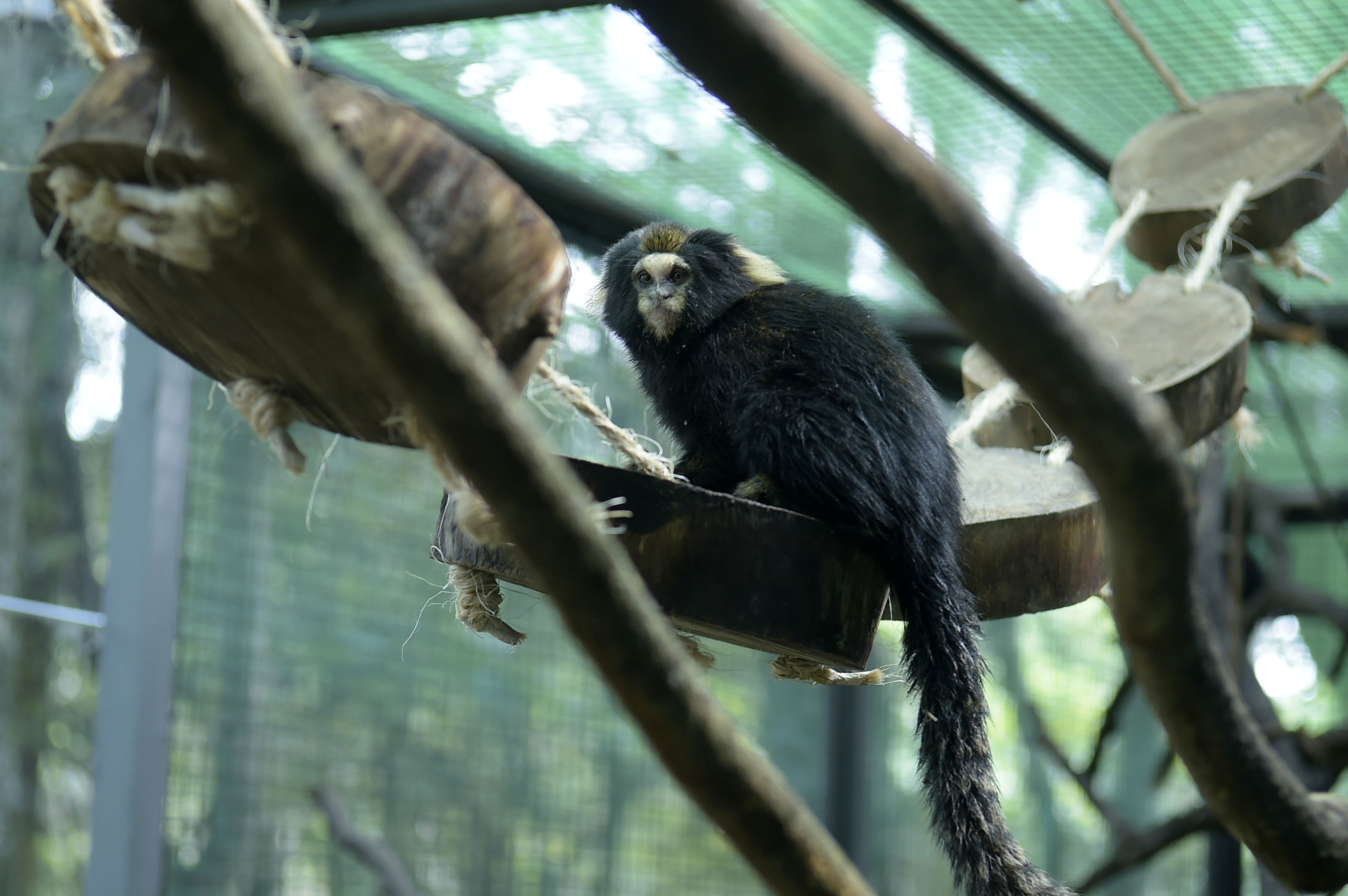 Uma família de saguis-da-serra-escuro (Callithrix aurita), espécie ameaçada de extinção, estreou nesta terça-feira (23), seu novo recinto no Zoológico de Guarulhos, no Jardim Rosa de França. O macho, Marcelino; a fêmea, Madonna, e seus sete filhotes agora têm um ambiente com 28m2 (a casa antiga tinha 12m2), equipada com “brinquedos”, vegetação nativa da Mata Atlântica e até um pequeno riacho com água corrente.
