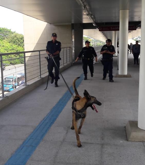 Na manhã desta quinta-feira (25), equipes do canil da Guarda Civil Municipal (GCM) realizaram um treinamento de mantrailing (busca de pessoas desaparecidas), no interior da Rodoviária do Parque Cecap, com cães das raças Akita, Pastor Belga Malinois e Bloodhound. Os animais estão sendo preparados para substituir o cão Haytham, que em breve irá se aposentar.