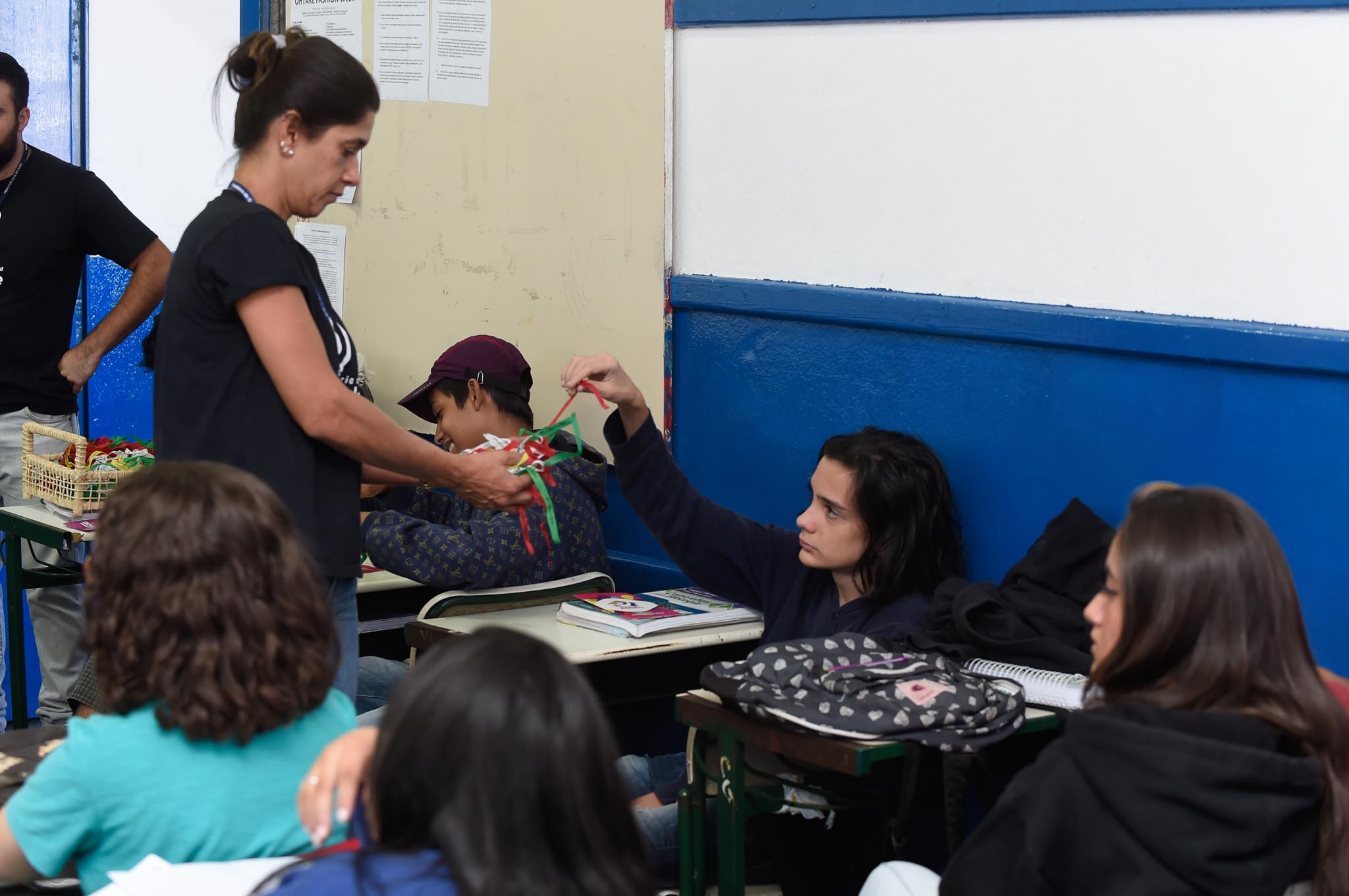 E como fazer para obter a atenção de uma sala lotada de adolescentes? Com muito técnica e didática, principalmente quando o assunto é de interesse. Em menos de um minuto, a exaltação deu lugar a olhares concentrados e expressão séria. O tema era “Amigo Estou Aqui”, que aborda assuntos sobre depressão, bullying, suicídio e valorização da vida. Ao final, são distribuídas fitinhas para os alunos entregarem para amigos, simbolizando que eles podem contar uns com os outros. E não foi difícil ver os alunos indo ao encontro dos amigos e amarrando as pulseiras nos pulsos um dos outros: sinal de que a ação foi um sucesso.