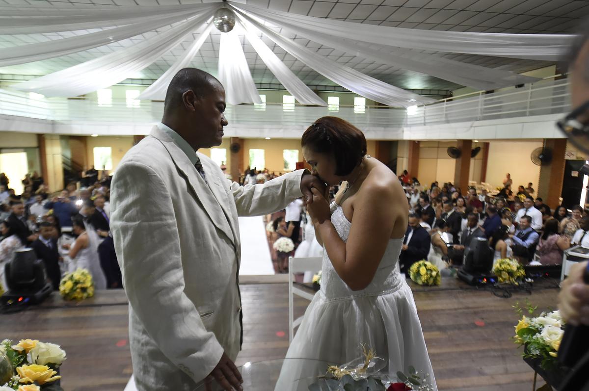 O casal namorou por um curto período e foi morar sob o mesmo teto dois anos atrás. “A gente sempre tem desejo de casar, mas tem que arrumar a pessoa certa e ela é a tampa da minha panela”, disse o noivo de Claudia, Rodrigo Luiz da Silva, 33 anos, que trabalha em um estacionamento.