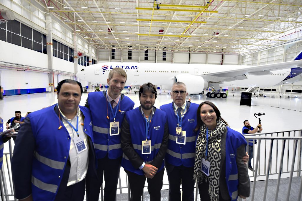 A Prefeitura de Guarulhos, representada pelo prefeito Guti, participou da apresentação do primeiro avião Boeing 777 com cabine totalmente remodelada da Latam na manhã desta terça-feira(27). O local do evento foi o novo e maior Centro de Manutenção de Linha (CML) da companhia, um galpão de 65 mil m² no Aeroporto Internacional de Guarulhos que começou a funcionar em março e significou um investimento de R$ 130 milhões no município, além de criar 400 postos de trabalho diretos e oportunidades de mão de obra durante as intervenções no local.