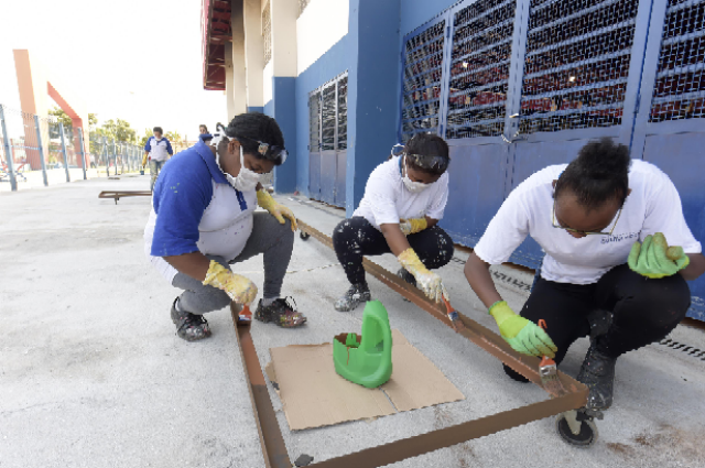 Entre os serviços realizados pelas alunas alocadas no complexo CEU Presidente Dutra, o que mais chama a atenção da maioria é a pintura. De acordo com Jaqueline Noronha da Silva Santos, 23 anos, uma das estudantes que se interessou pela área, a turma foi responsável por pintar não só algumas das paredes do complexo, como também cadeiras, bancos, grades e chão. “Eu já sabia um pouco, mas tinha certa dificuldade. Então foi muito bom aprender, tanto na teoria em sala de aula como na prática”, afirmou. Além disso, elas também estão aprendendo sobre manutenção de móveis, trocas de lâmpadas, reparo em tomadas, alvenaria, entre outras atividades.