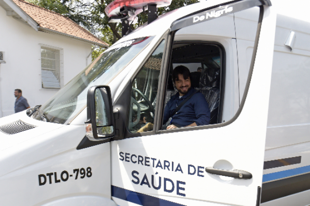 A Secretaria de Saúde recebeu na manhã desta quinta-feira (12) o reforço de 11 viaturas zero km, da marca Renault Kwid, e mais uma van Mercedes-Benz Sprinter 415 CDI zero km, adaptada para o Serviço de Verificação de Óbitos (SVO), de um total de três que devem ser repassadas ao SVO até o final do mês. Durante solenidade realizada no Paço Municipal o prefeito Guti fez a entrega simbólica das chaves à secretária de Saúde, Ana Cristina Kantzos.
