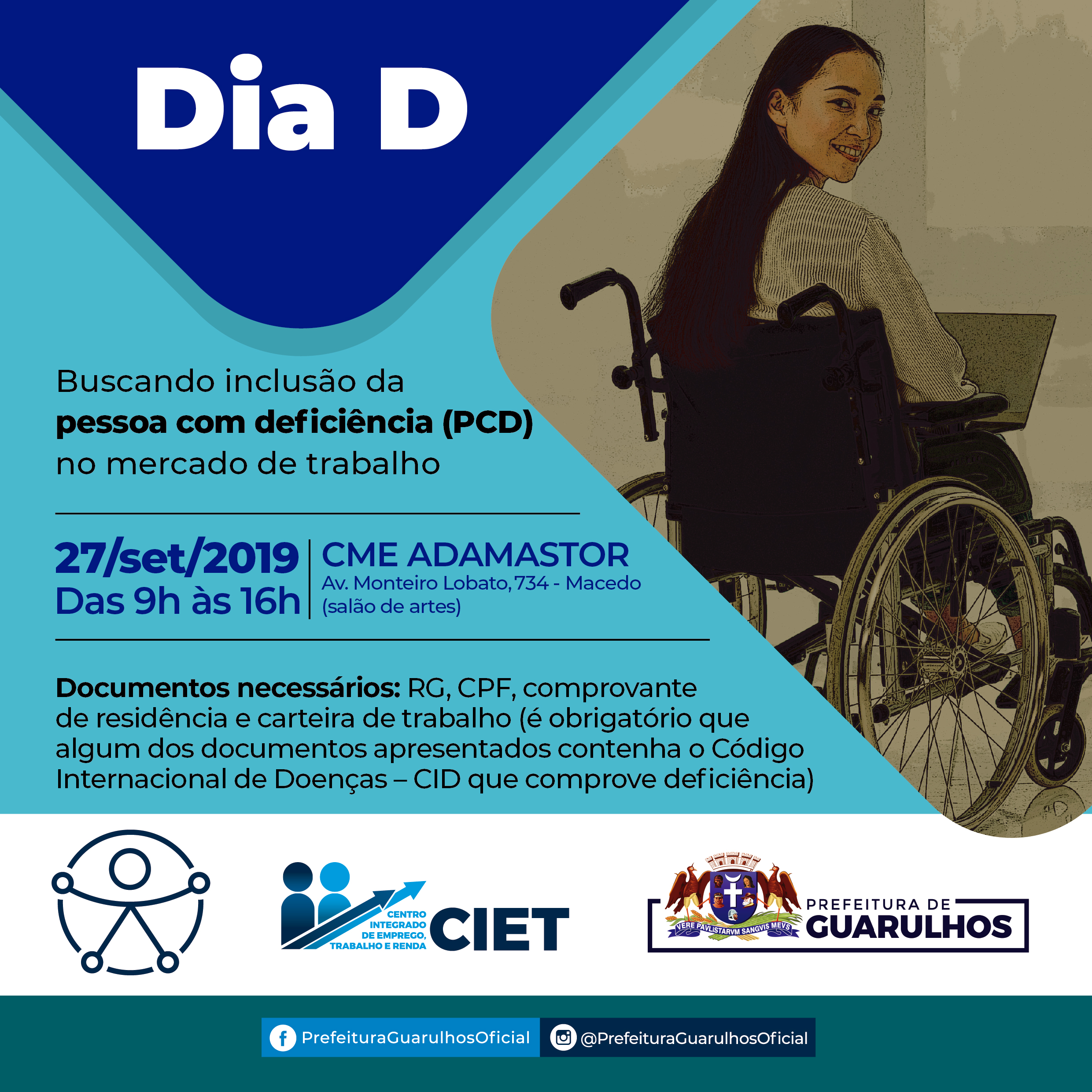 O Adamastor Centro receberá no próximo dia 27 o Dia D, voltado à empregabilidade da pessoa com deficiência (PCD). Promovido pela Prefeitura de Guarulhos por meio da Secretaria do Trabalho, o evento tem o objetivo de disponibilizar vagas de emprego para PCD em empresas situadas na cidade.