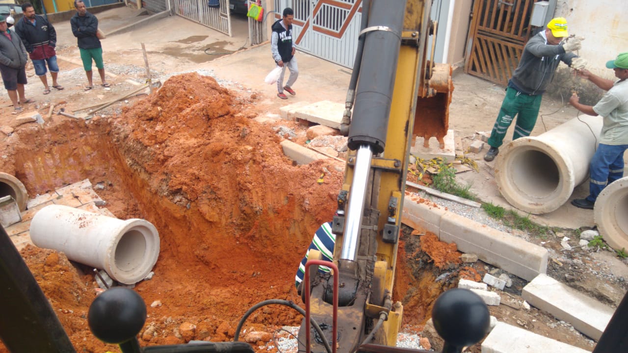 No primeiro endereço, servidores trabalham na instalação da rede de drenagem de águas pluviais, com oito bocas de lobo e três poços de visita. Nas próximas etapas, serão implantados 100 metros de guias e sarjetas e, posteriormente, pavimentação com piso intertravado de 250 m².