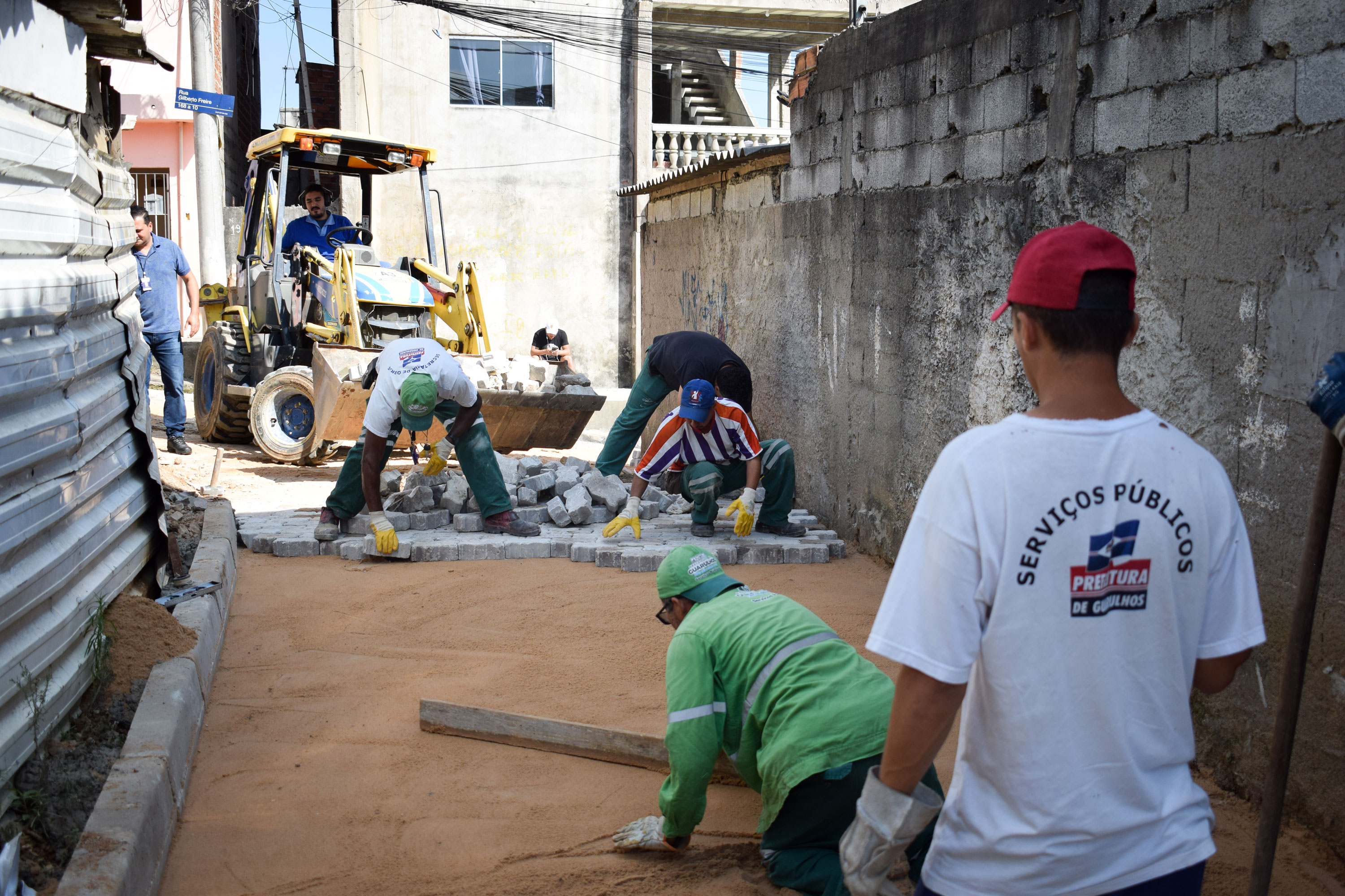 A infraestrutura necessária para que a via possa receber o pavimento (35 metros de guias) já foi instalada. No momento, servidores trabalham na aplicação 105m² de blocos intertravados. O trabalho tem apoio da Proguaru e previsão de conclusão para a próxima terça-feira, dia 15.