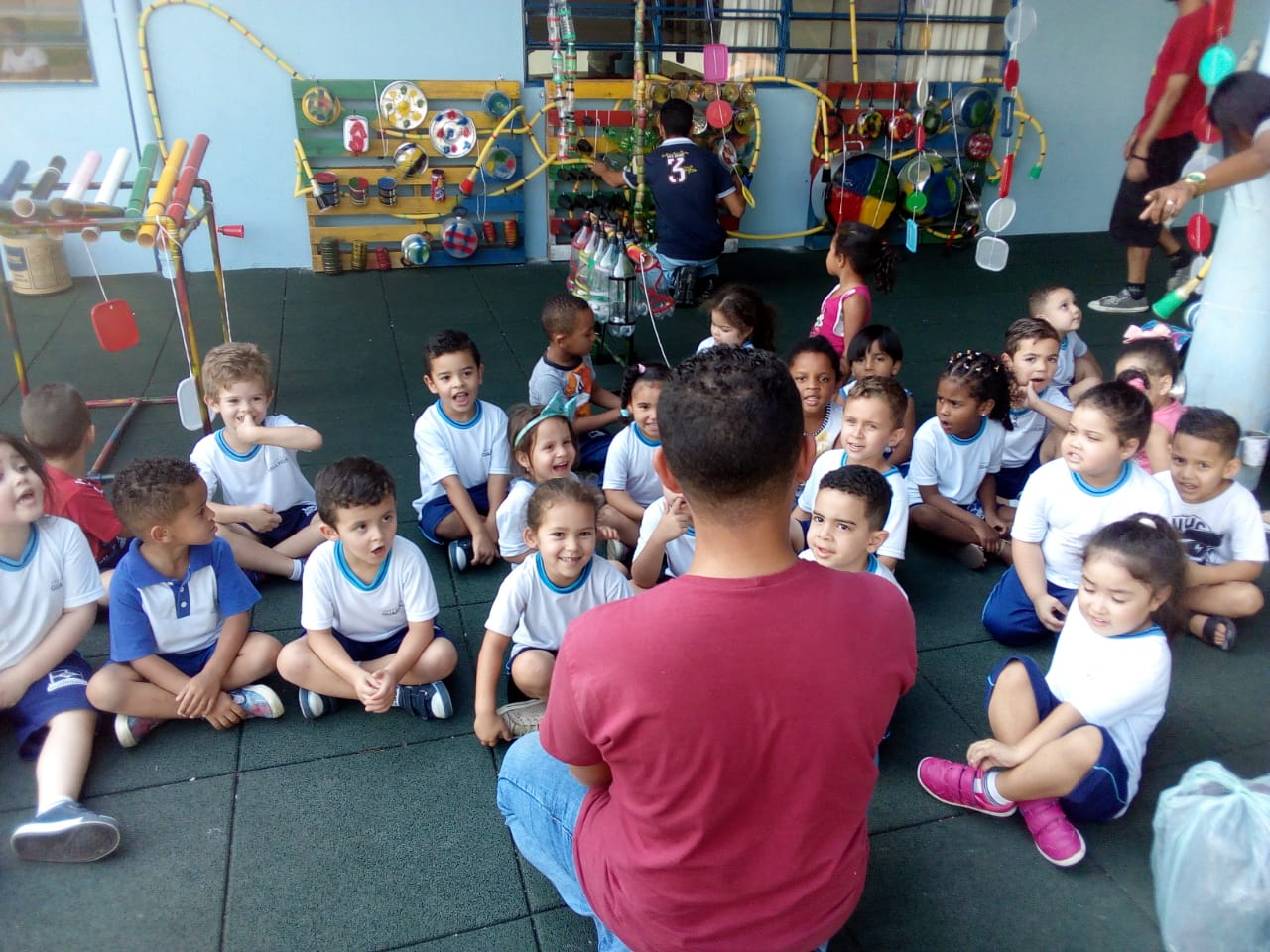 Oferecer um espaço musical, criativo e lúdico para desenvolvimento integral das crianças é a proposta pedagógica do Parque Sonoro instalado neste mês na EPG Mauro Roldão Neto, no Pimentas. Através da manipulação de objetos reutilizados, criam-se sons e melodias para explorar o universo infantil por meio de estímulos sensoriais e motor.