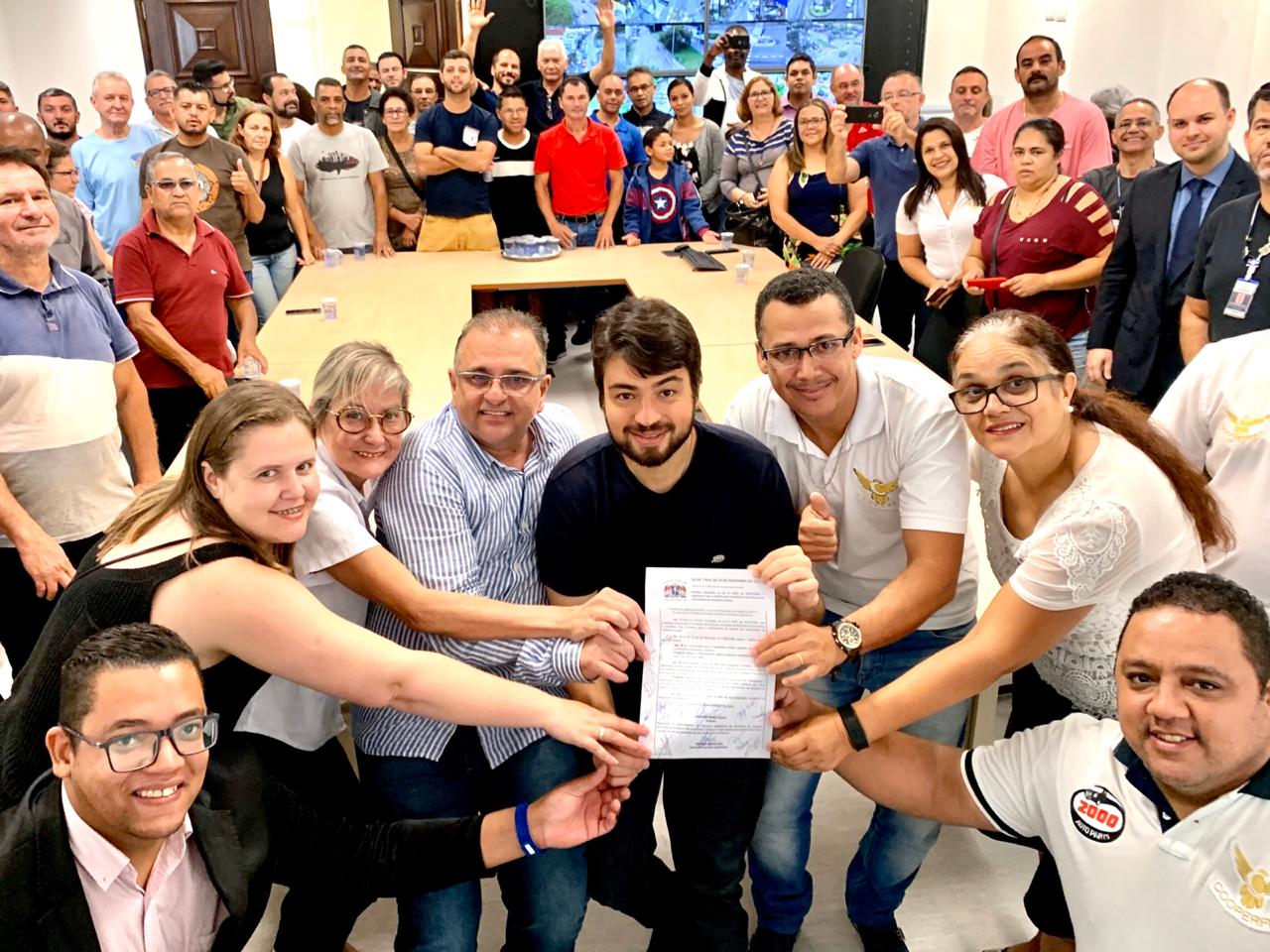 O prefeito Guti sancionou a Lei nº 7.814/19, que permite a transferência da autorização do direito de realizar transporte escolar em Guarulhos, nesta segunda-feira (23). O anúncio foi aconteceu no Paço Municipal, com participação do secretário de Governo, Edmilson Americano, e representantes da categoria.