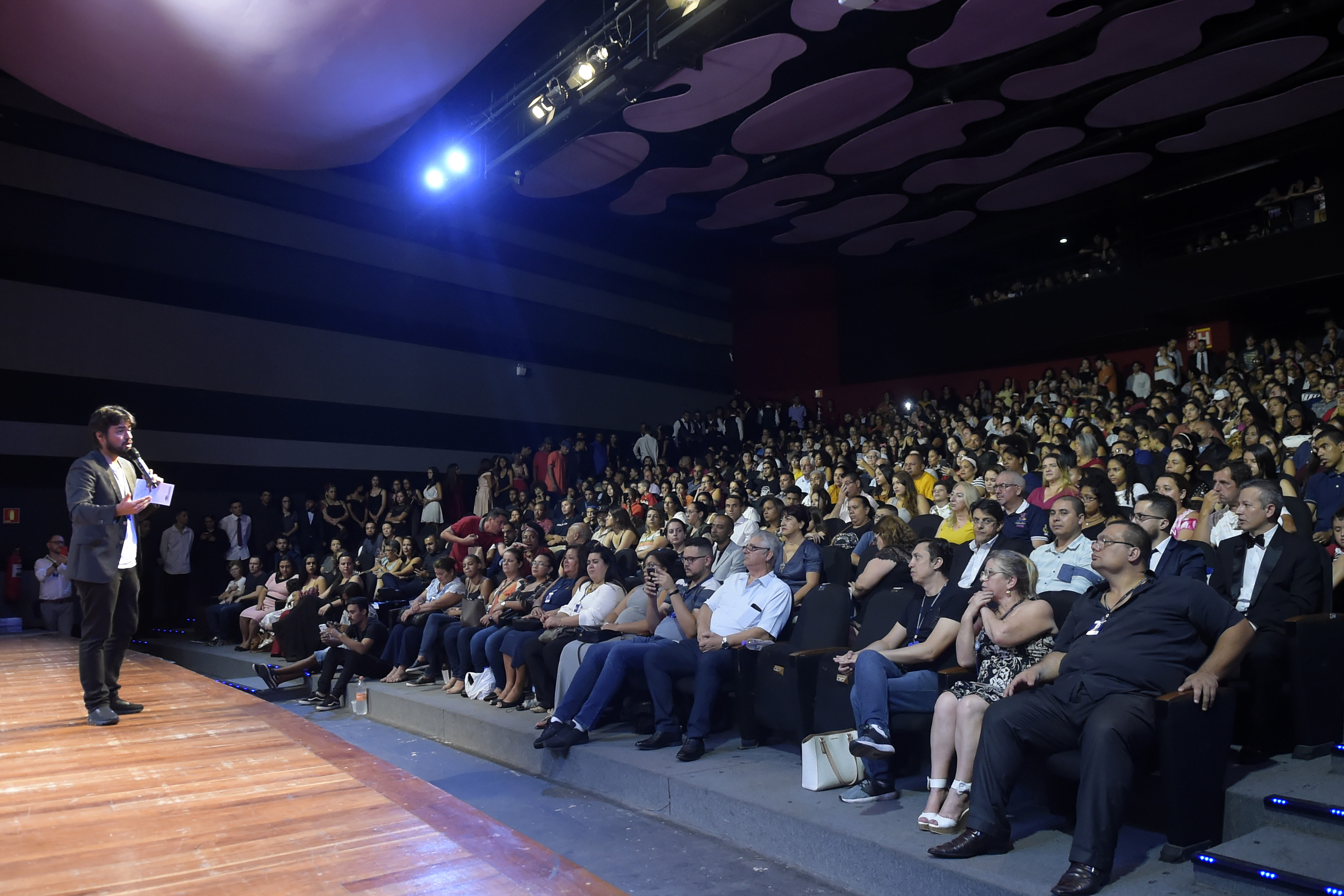 O Adamastor Centro recebeu na noite desta quinta-feira (30) a formatura de 230 alunos do programa Jovem Trabalhador. Em uma noite especial repleta de homenagens, os formandos puderam receber os seus diplomas pela conclusão dos cursos profissionalizantes das mãos do prefeito Guti e da secretária do Trabalho, Telma Cardia. A Pasta já formou mais de duas mil pessoas em cursos profissionalizantes nos últimos três anos.