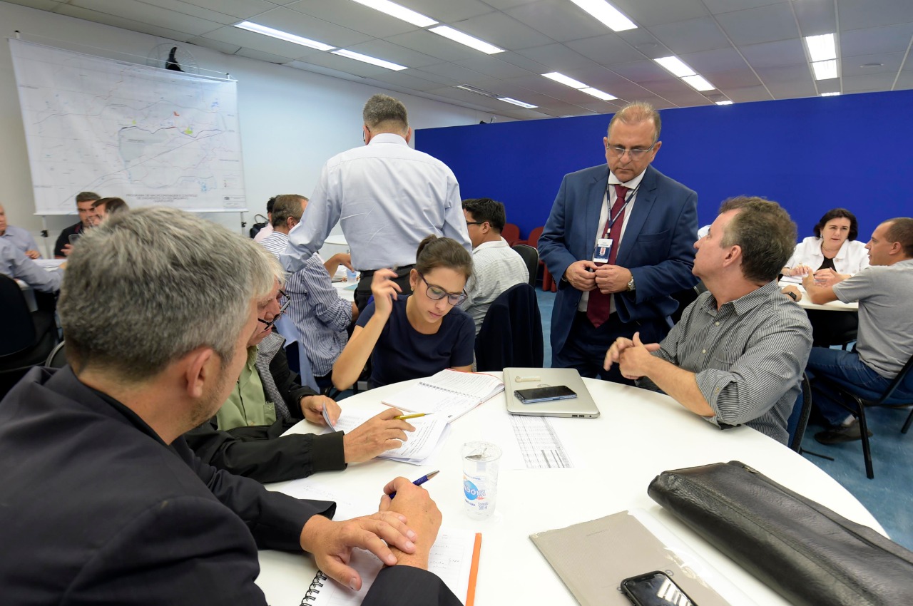 Integrantes da Corporação Andina de Fomento (CAF) estiveram na manhã desta quarta-feira, dia 4, nas regiões do Presidente Dutra, Ponte Alta e Água Azul para dar andamento às visitas de campo que tiveram início na última terça-feira (3), com vistoria a vias próximas, travessias e a foz do Rio Baquirivu, além de áreas para implantação do reservatório e do Parque Linear. No período da tarde, eles voltaram a se reunir no Paço Municipal, em mesas temáticas, com técnicos de diversas pastas, lideradas pelo secretário de Governo, Edmilson Americano.