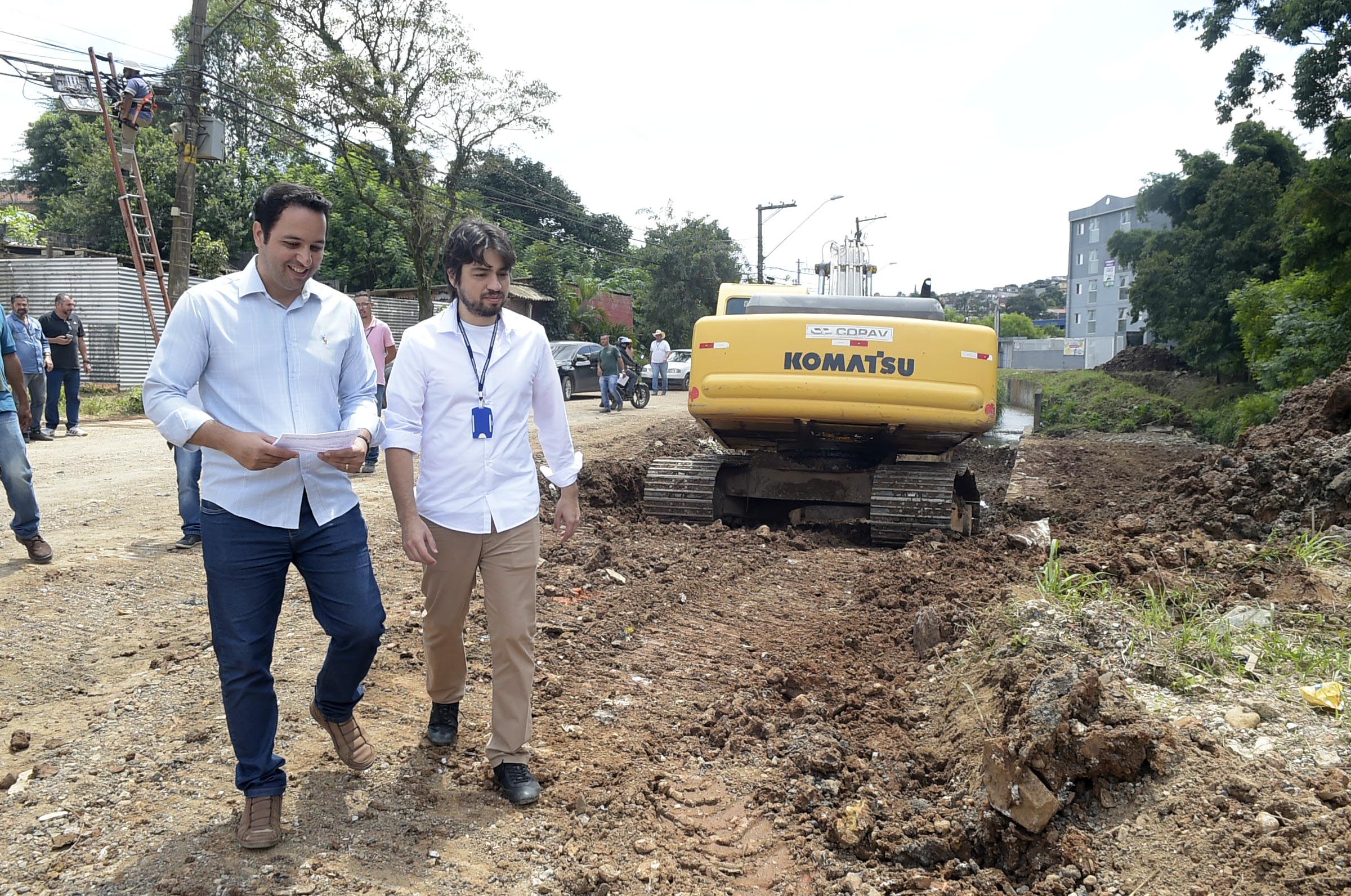 Na manhã desta quinta-feira, dia 5, o prefeito Guti e técnicos da Secretaria de Obras estiveram na avenida Minas Gerais, no bairro Soberana, para acompanhar a retomada dos trabalhos de pavimentação e drenagem ao longo do córrego Iguaçu-Tietê.