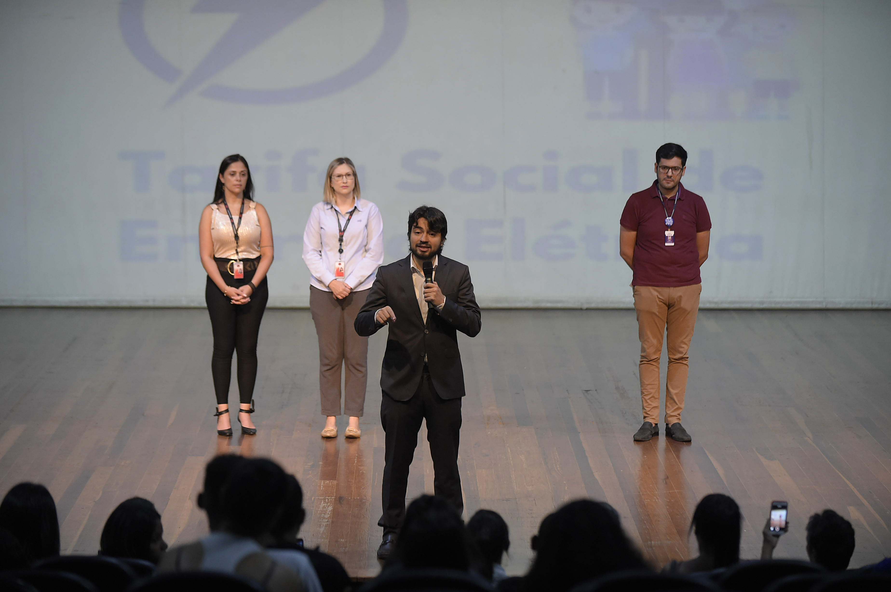 O prefeito Guti, acompanhado do secretário de Desenvolvimento e Assistência Social, Alex Viterale, participou nesta quinta-feira (12) do 3º Mutirão da Tarifa Social de Energia Elétrica, que reuniu um público de aproximadamente 230 pessoas no Teatro do Adamastor Centro. A iniciativa da Prefeitura, viabilizada pela Assistência Social em parceria com a EDP, possibilita desconto na conta de luz aos inscritos no Cadastro Único para Programas Sociais (CadÚnico)/Bolsa Família ou que recebem o BPC (Benefício de Prestação Continuada da Assistência Social). A Pasta distribuiu previamente 763 formulários aos interessados que se enquadram no perfil do benefício.
