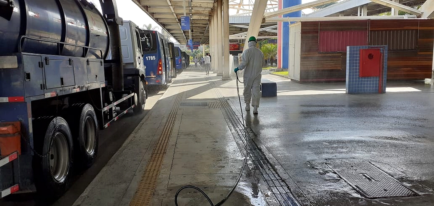 Os terminais de ônibus do São João, Taboão e Pimentas estão sendo higienizados diariamente e, nesta terça-feira, o Terminal Metropolitano do Parque Cecap foi contemplado também com a ação. Já os pontos de ônibus atendidos pelas equipes estavam localizados na avenida Odair Santanelli (Parque Cecap), avenida Monteiro Lobato, avenida Tiradentes, avenida Otávio Braga de Mesquita, avenida Salgado Filho, avenida Timóteo Penteado e avenida Transguarulhense, além de pontos localizados na região do Pimentas.
