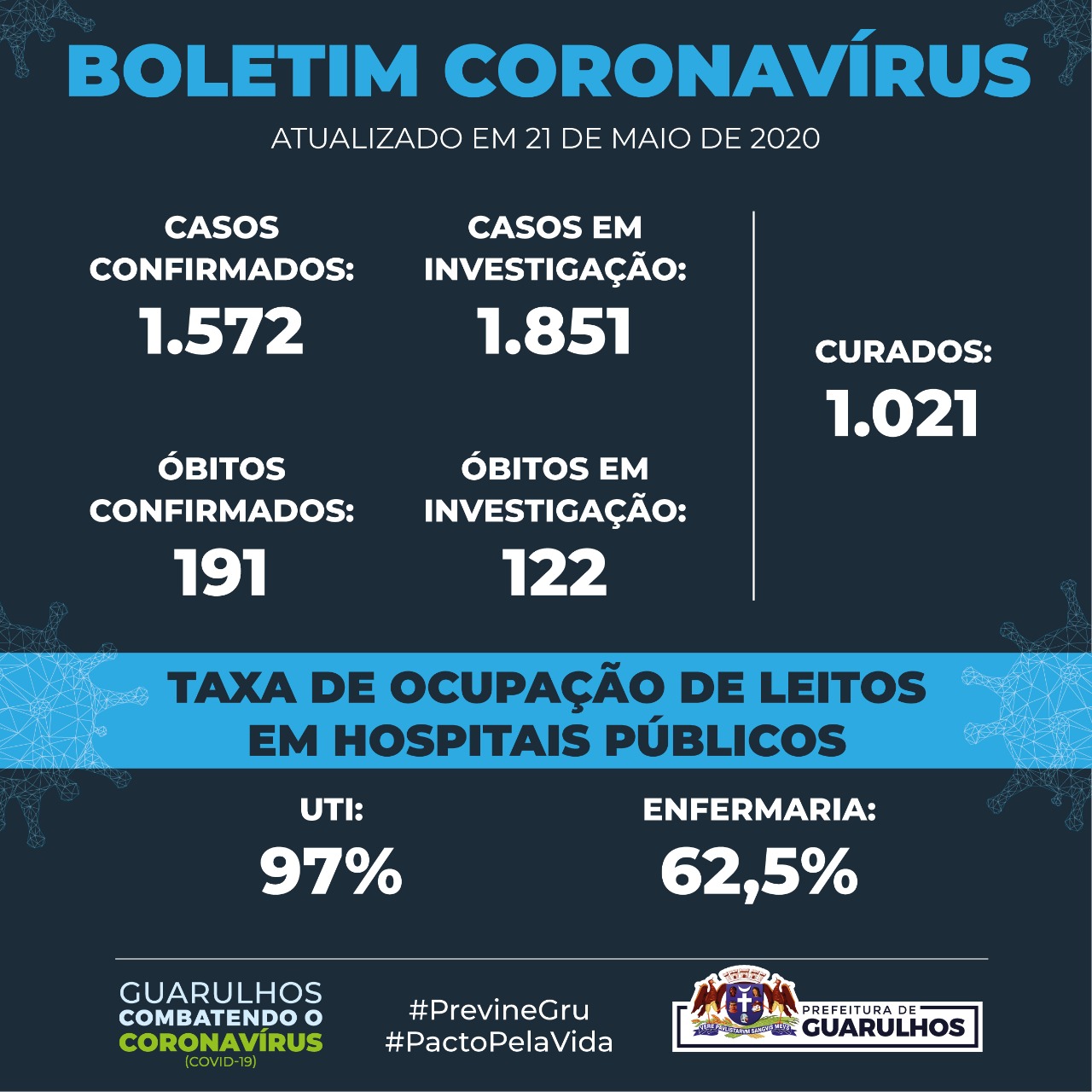 Em Guarulhos, mesmo com a confirmação de mais 120 casos de coronavírus (Covid-19) nas últimas 24 horas, totalizando 1.572, o número de casos descartados para a doença permanece maior, 2.649. A cidade ainda investiga outros 1.851 casos. No entanto, com os números de óbitos ocorre o contrário. São 191 mortes confirmadas e 94 descartadas, enquanto que outras 122 seguem em investigação.