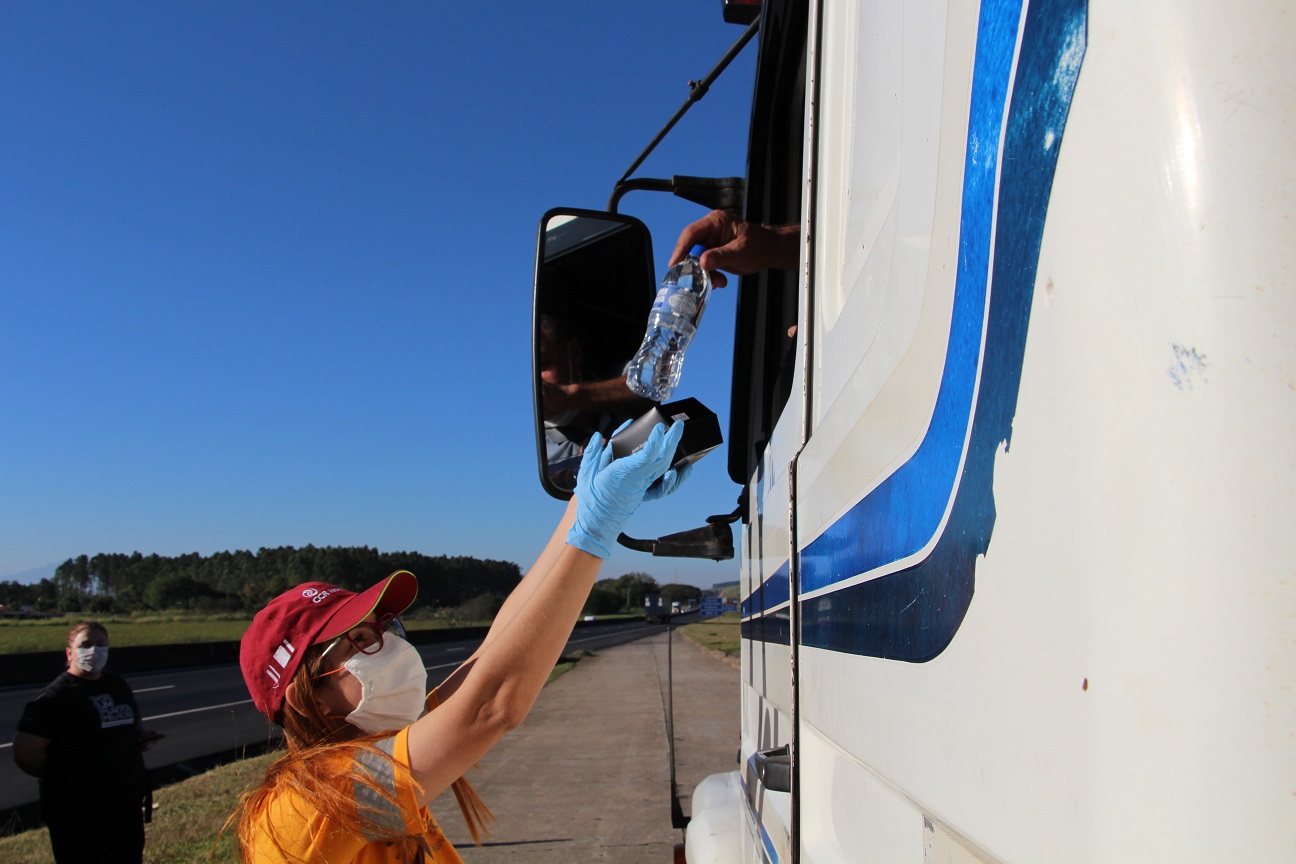 A distribuição dos kits de sabonetes soma forças a outras ações que ocorrem nos quatro pontos de apoio instalados na rodovia que, desde o início da pandemia, já beneficiou mais de 36 mil caminhoneiros.