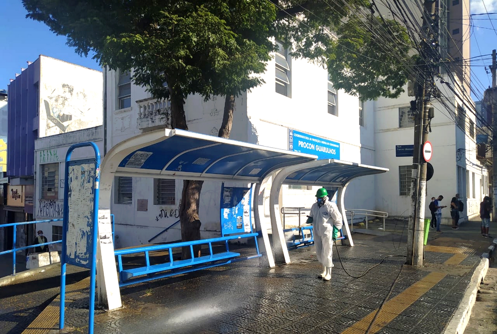 A Prefeitura de Guarulhos, por meio da Proguaru (Progresso e Desenvolvimento de Guarulhos S/A), realizou nesta segunda-feira, 8, a higienização de pontos de ônibus localizados em vias da região central. O serviço faz parte das ações de combate ao Coronavírus que vem sendo implementada no município.
