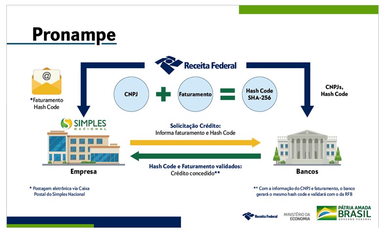 A Receita Federal está trabalhando para facilitar a adesão das Micro e Pequenas Empresas ao Pronampe, tornando mais fácil para as empresas interessadas comprovarem a sua receita declarada, entretanto, a concessão depende da instituição financeira participante do programa.
