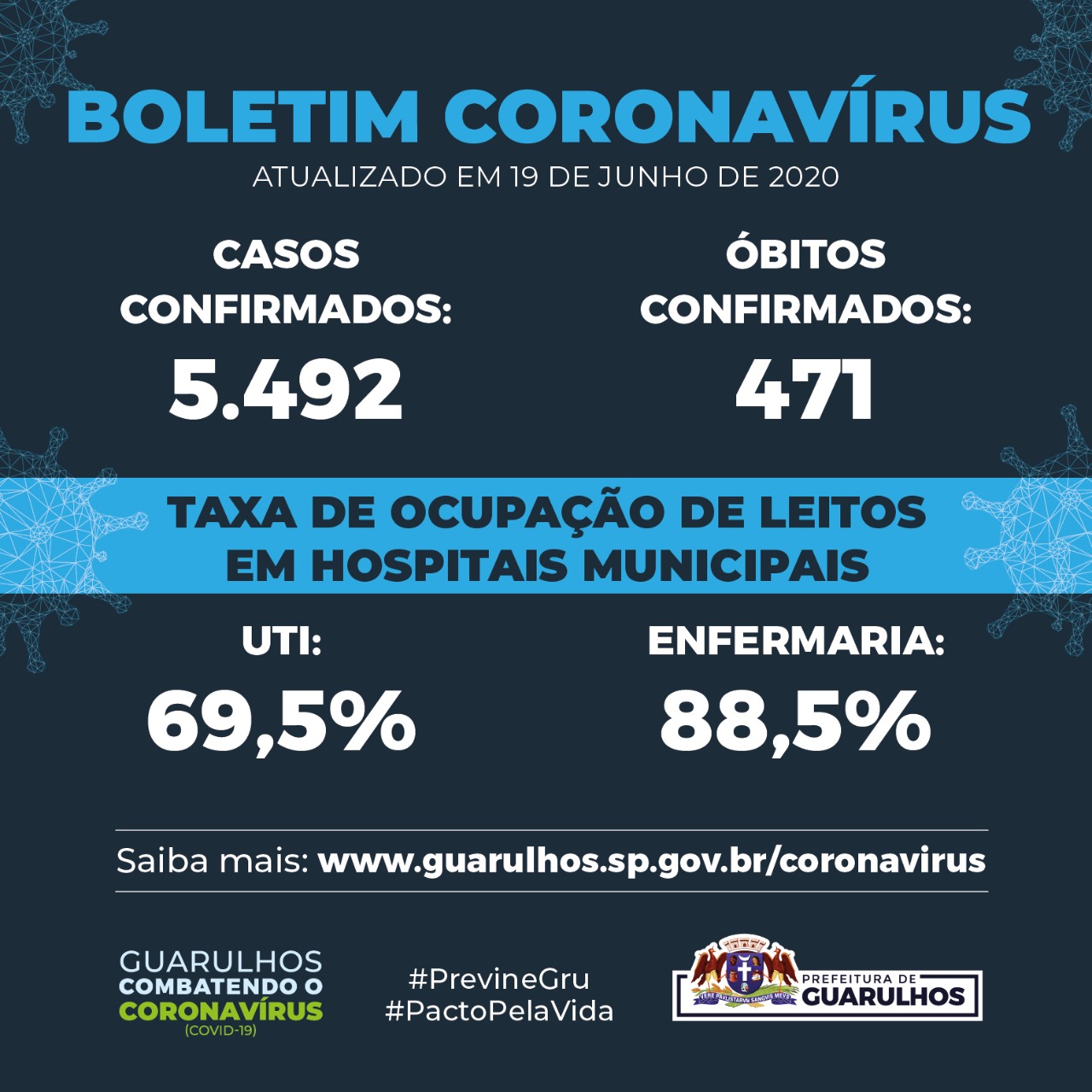 Nesta data, a cidade registra 5.492 casos de pessoas infectadas pelo novo coronavírus, com a confirmação de 61 casos. As informações são do Boletim Epidemiológico atualizado diariamente pela Secretaria Municipal da Saúde, a qual informa ainda a confirmação de mais 17 óbitos ocasionados pela doença. Com isso, o município contabiliza 471 mortes, enquanto que outras 52 seguem em investigação. A taxa de letalidade em Guarulhos é de 8,5%.