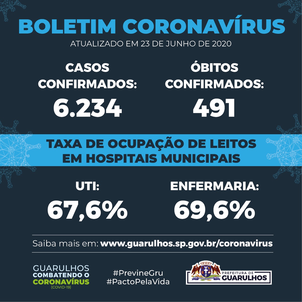 O Boletim Epidemiológico divulgado pela Secretaria Municipal da Saúde mostra que Guarulhos contabiliza 491 óbitos de um total de 6.049 pessoas infectadas pelo novo coronavírus (Covid-19), o que representa uma taxa de letalidade de 8,1%. Nesta terça-feira (23) foram confirmados mais quatro óbitos e 185 casos.