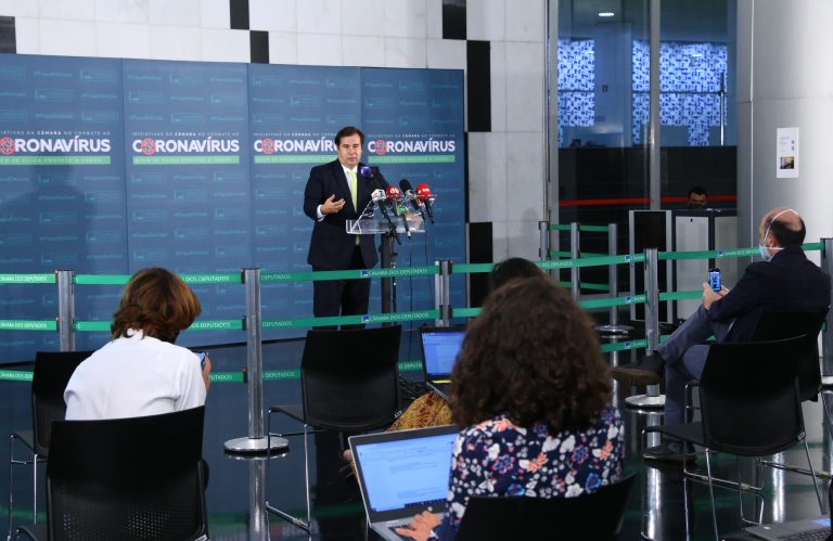 Maia diz estar dialogando com os líderes para avançar na proposta de adiamento das eleições. “A eleição não pode estar à frente de salvar vidas e proteger as famílias brasileiras”, defendeu.