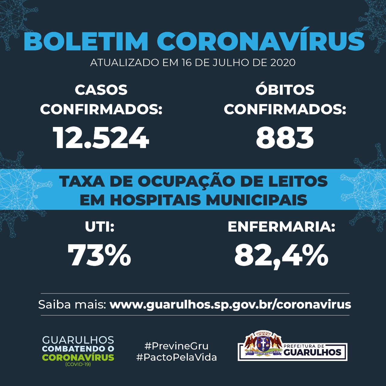 Guarulhos manteve nesta quinta-feira (16) a menor taxa de letalidade da Covid-19 já registrada no município desde o início da pandemia: 7%. Em 14 de maio o percentual era de 12,9%. Segundo informações do Boletim Epidemiológico Semanal divulgado pela Secretaria da Saúde, a cidade tem atualmente 12.524 casos confirmados do novo coronavírus e 883 óbitos.