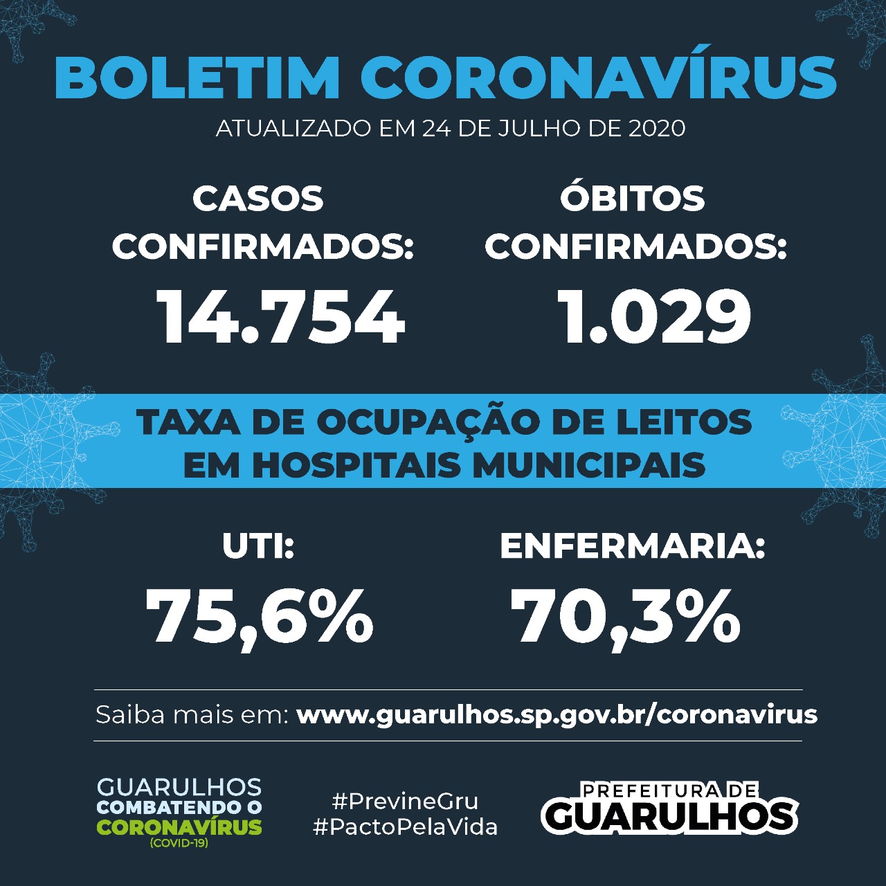 Guarulhos encerra a semana com a melhora de dois indicadores da Covid-19. Nesta sexta-feira (24) a taxa de letalidade da doença caiu para 6,97% na cidade e o índice de cura subiu para 89,23%, apontando para mais de 13 mil pessoas recuperadas do novo coronavírus no município do total de 14.754 casos confirmados até o momento.