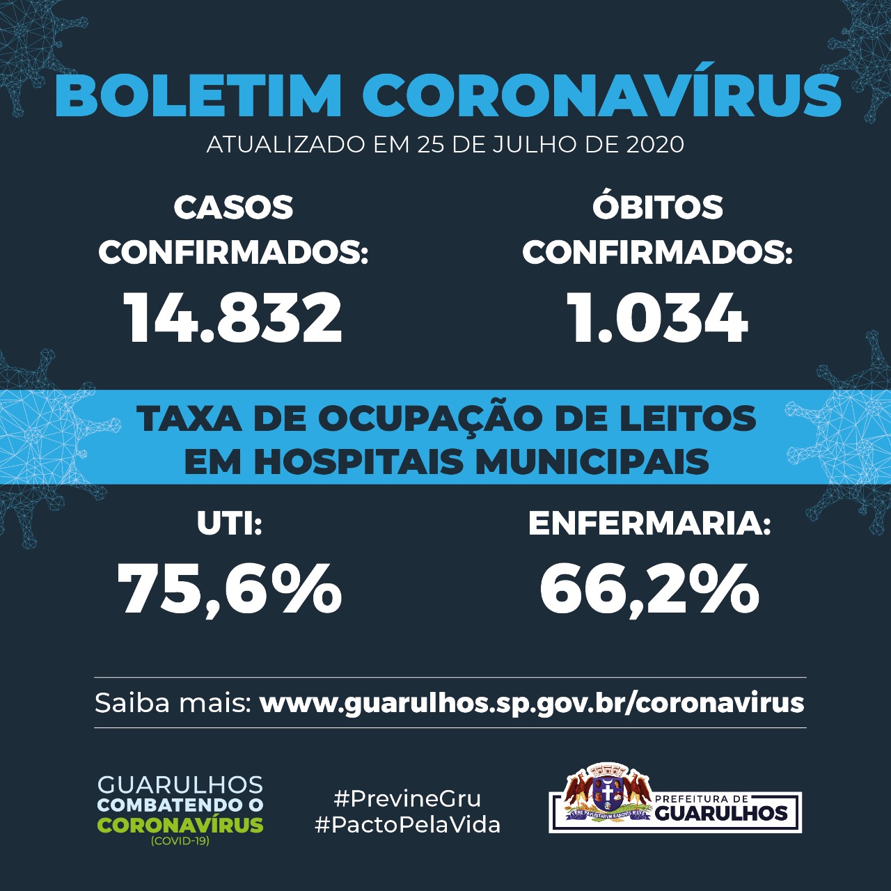 Nas últimas 24 horas Guarulhos recebeu a notificação de mais 78 casos do novo coronavírus, contabilizando até o momento 14.832 pessoas infectadas pela doença e 1.034 óbitos, cinco a mais que o divulgado no dia anterior. As mortes estavam sob investigação e tiveram a confirmação do diagnóstico nesta data. Uma delas ocorreu em maio, uma em junho e as demais este mês, totalizando quatro homens e uma mulher com idades entre 50 e 80 anos ou mais. Outras 20 são investigadas na cidade.