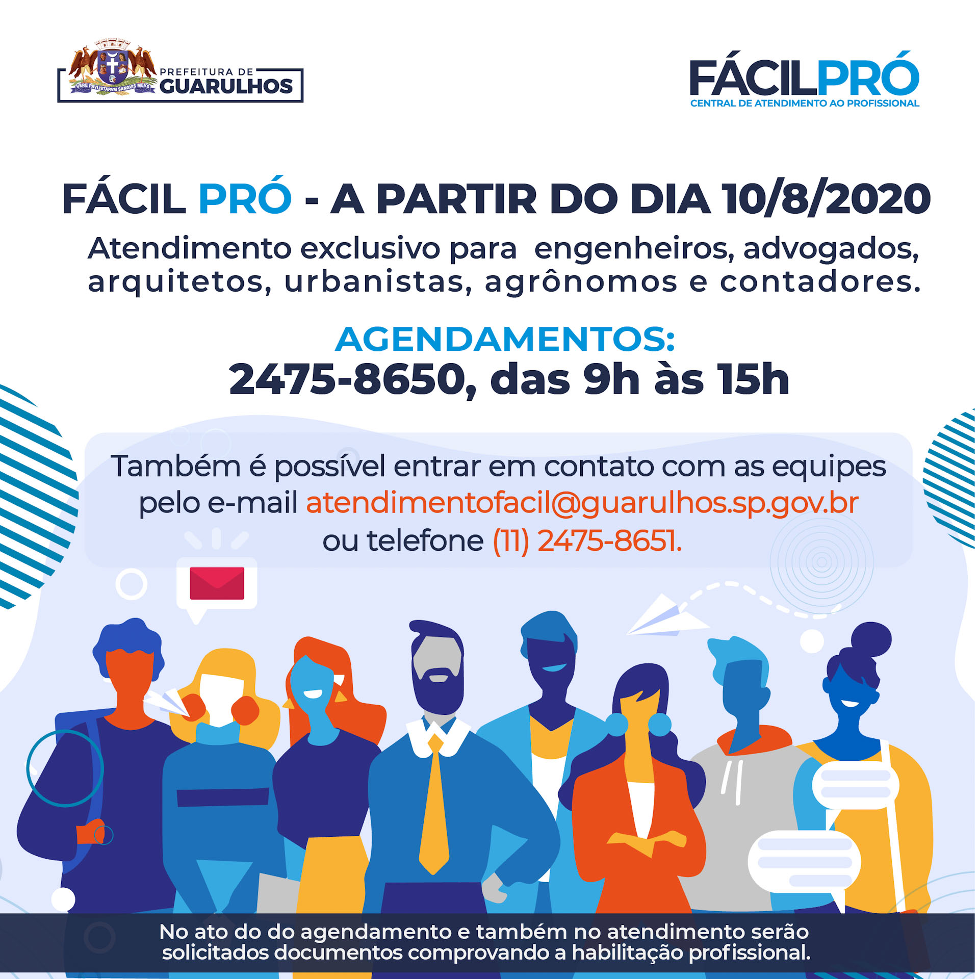 A partir da próxima segunda-feira (10) engenheiros, advogados, arquitetos, urbanistas, agrônomos e contadores terão atendimento exclusivo na Rede Fácil de Atendimento ao Cidadão. A decisão de criar o Fácil Pro foi tomada para facilitar a resolução de problemas desses profissionais e de seus clientes.