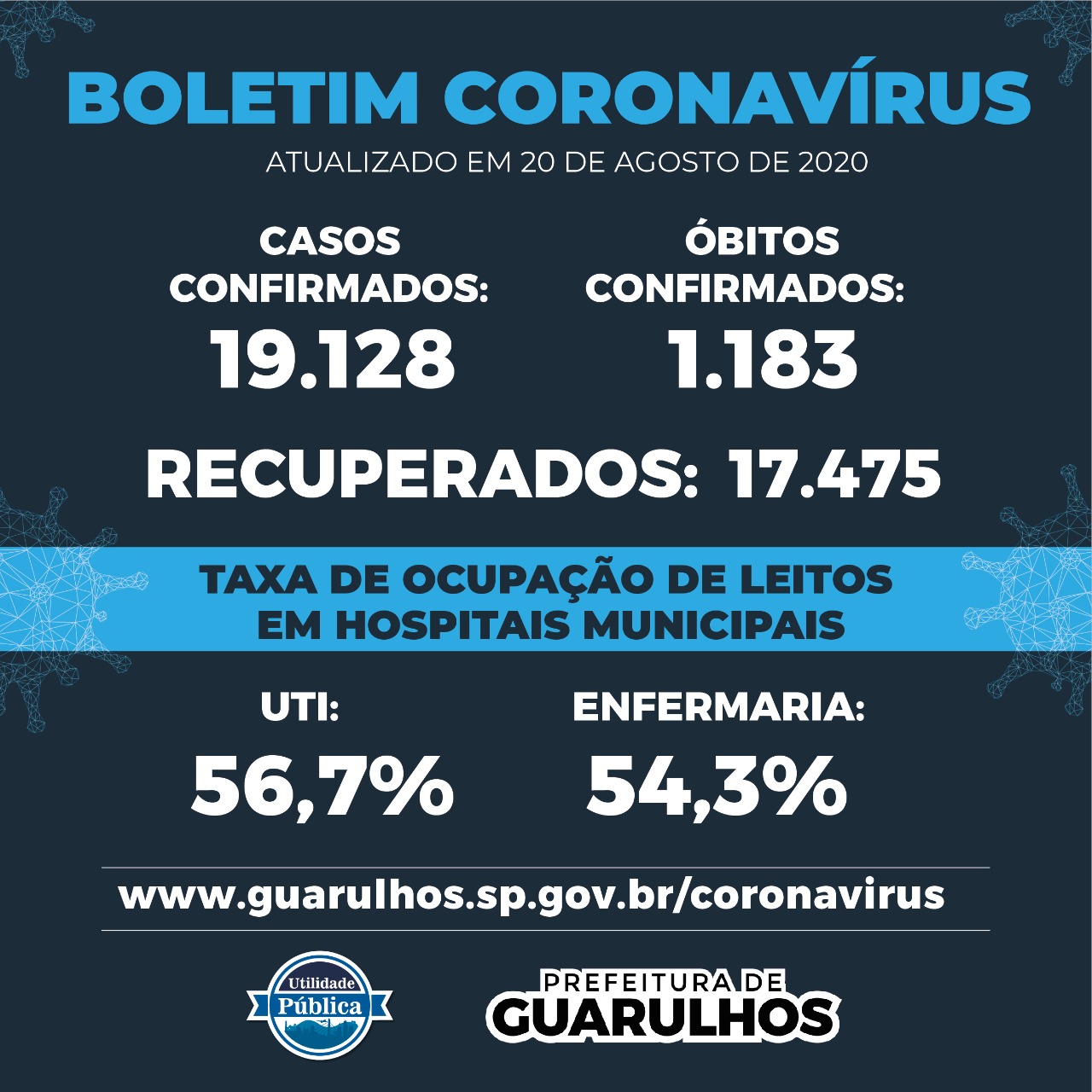 Dados da Vigilância Epidemiológica Municipal desta terça-feira (20/08/2020):