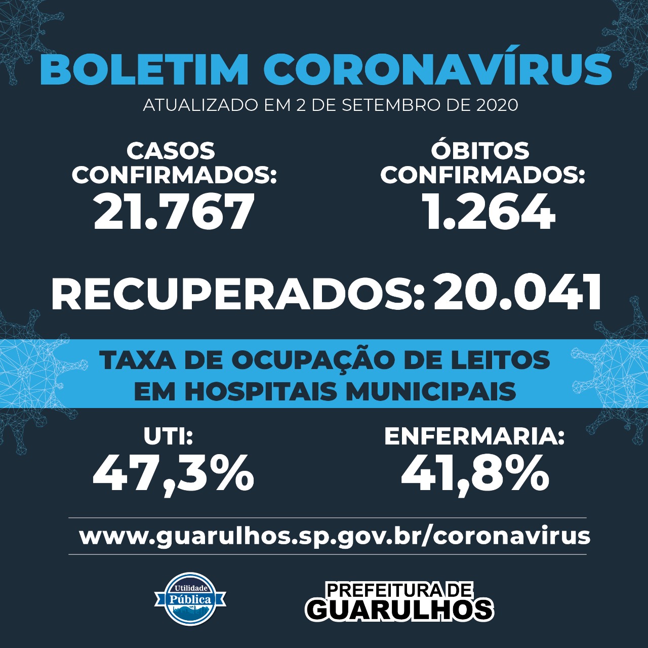 Dados da Vigilância Epidemiológica Municipal desta quarta-feira (02/09/2020):