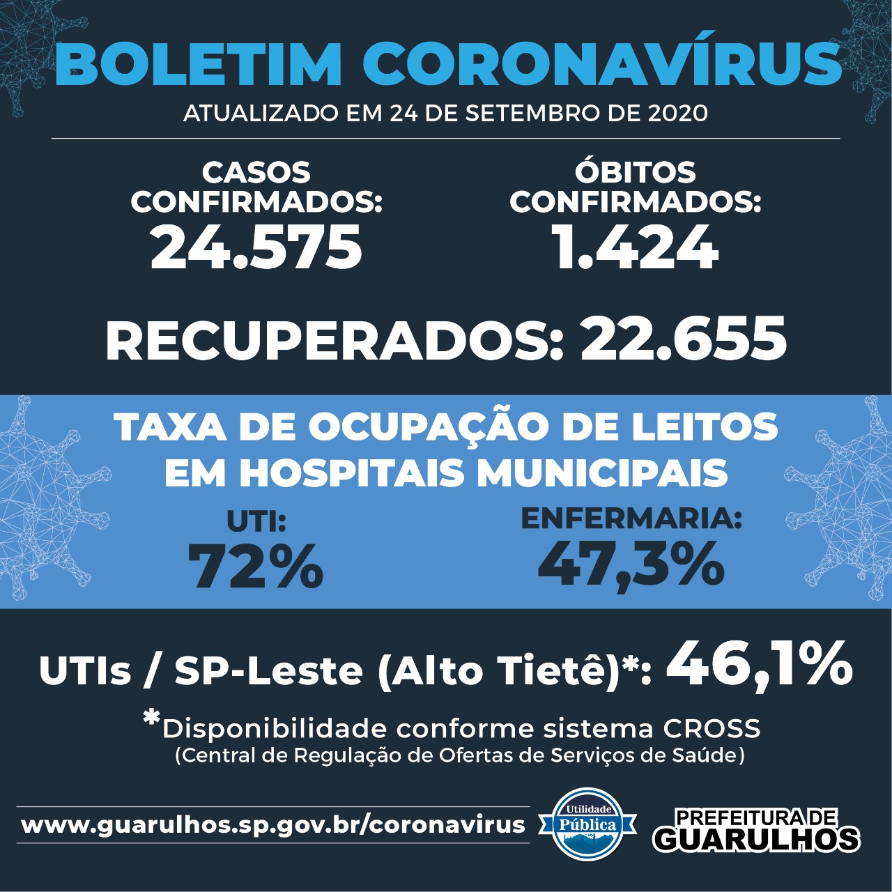 Dados da Vigilância Epidemiológica Municipal desta quinta-feira (24/09/2020):