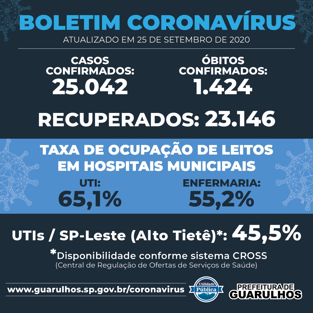 Dados da Vigilância Epidemiológica Municipal desta sexta-feira (25/09/2020):