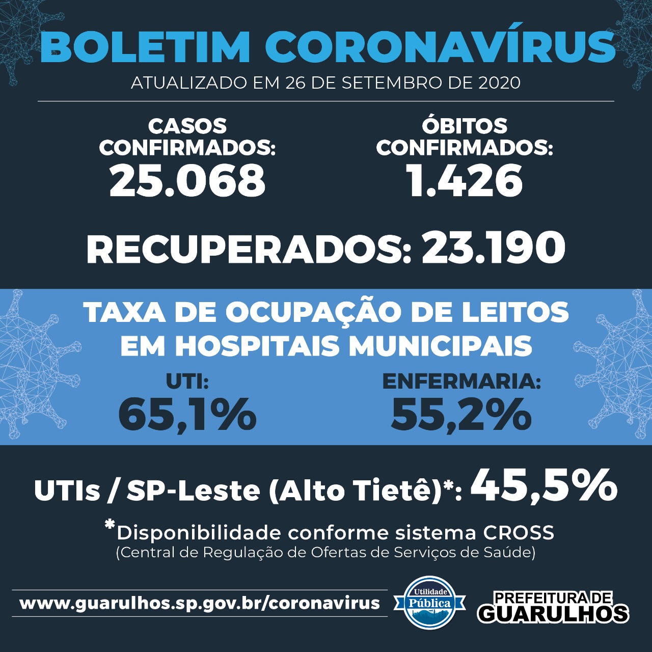 Dados da Vigilância Epidemiológica Municipal deste sábado (26/09/2020):