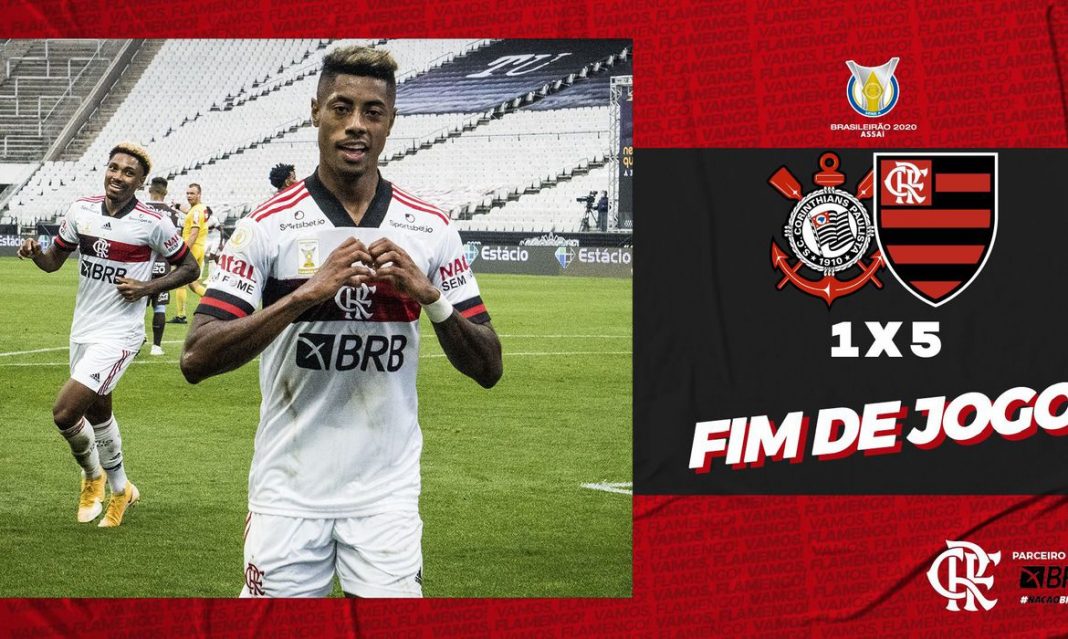 O Flamengo venceu o Corinthians por 5 a 1, neste domingo (18), na Arena Neo Química. A partida, foi válida pela 17ª sétima rodada da Série A do Campeonato Brasileiro, foi transmitida pela Rádio Nacional. O resultado coloca a equipe carioca na liderança provisória da Série A, com 34 pontos. Os cariocas podem ceder o lugar, pois o G4 só será definido após os resultados da rodada, dos duelos Internacional x Vasco, e Atlético-MG x Bahia. A derrota deixou o Timão na 14ª posição, com 18 pontos, próximo da zona de rebaixamento.