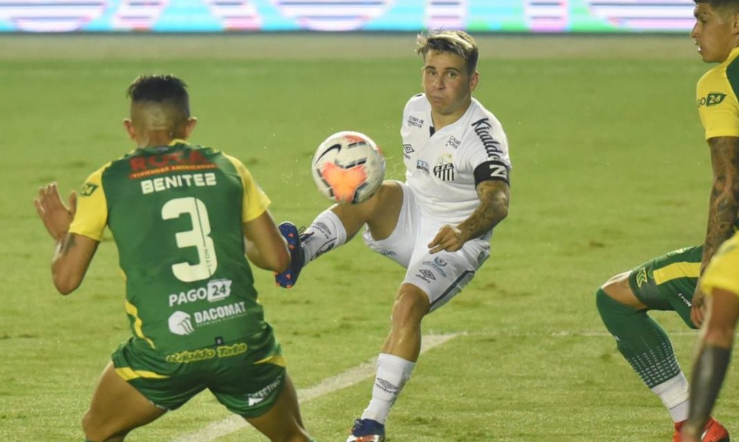 Com um gol de Marcos Leonardo nos acréscimos do segundo tempo, o Santos derrotou o Defensa y Justicia (Argentina) por 2 a 1 nesta terça-feira (20) na Vila Belmiro e encerra a primeira fase da Libertadores invicto e como líder do grupo G.