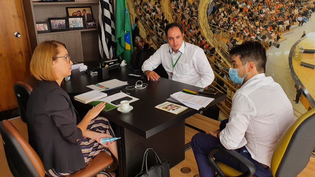 O prefeito Guti se reuniu nesta terça-feira (23), em Brasília, com a assessora especial da Superintendência Regional da Companhia Nacional de Abastecimento (Conab), Claudia Fonseca, para reivindicar a ampliação de repasses ao Programa de Aquisição de Alimentos (PPA) de Guarulhos e aumentar doações e arrecadações de gêneros alimentícios para o Banco de Alimentos do município.