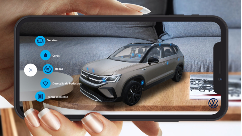 O Taos ainda não chegou ao mercado, mas graças à digitalização da Volkswagen é possível ver todos os detalhes do SUV na palma da mão. A marca coloca no ar a partir de hoje (26) a opção de configuração do Taos no aplicativo VW Experience, que utiliza a realidade aumentada para projetar o novo SUV da marca, seja em miniatura ou em tamanho real, permitindo inclusive que o usuário interaja com o veículo, abrindo e fechando as portas e até simular que está dirigindo o modelo.